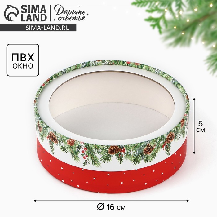 Коробка для макарун тубус с окном «Новогодняя ботаника», 16 х 16 х 5 см — Характеристики