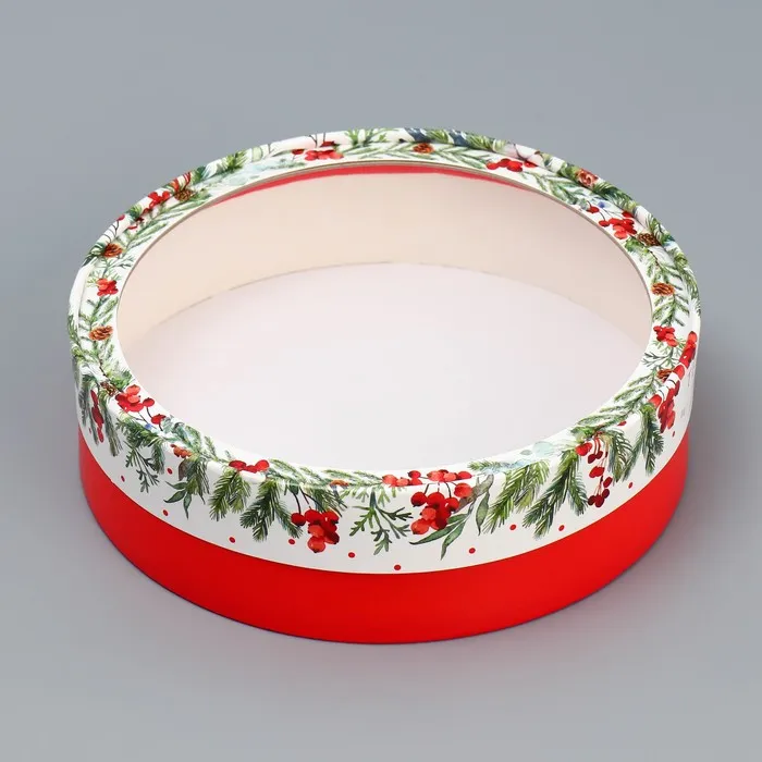 Коробка для макарун тубус с окном «Новогодняя ботаника», 20 х 20 х 5 см — Характеристики