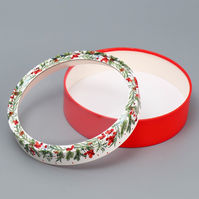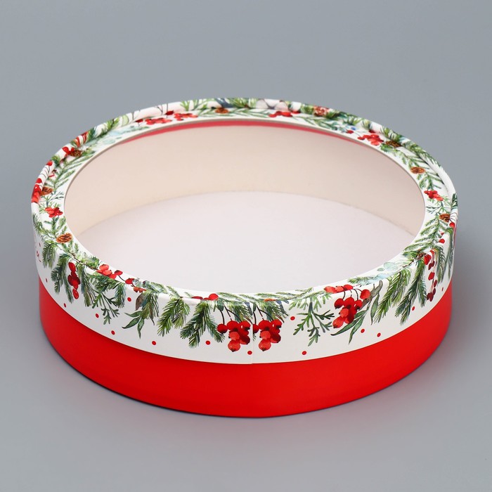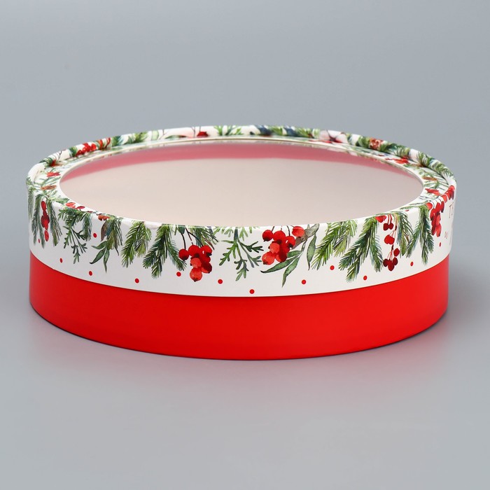 Коробка для макарун тубус с окном «Новогодняя ботаника», 20 х 20 х 5 см