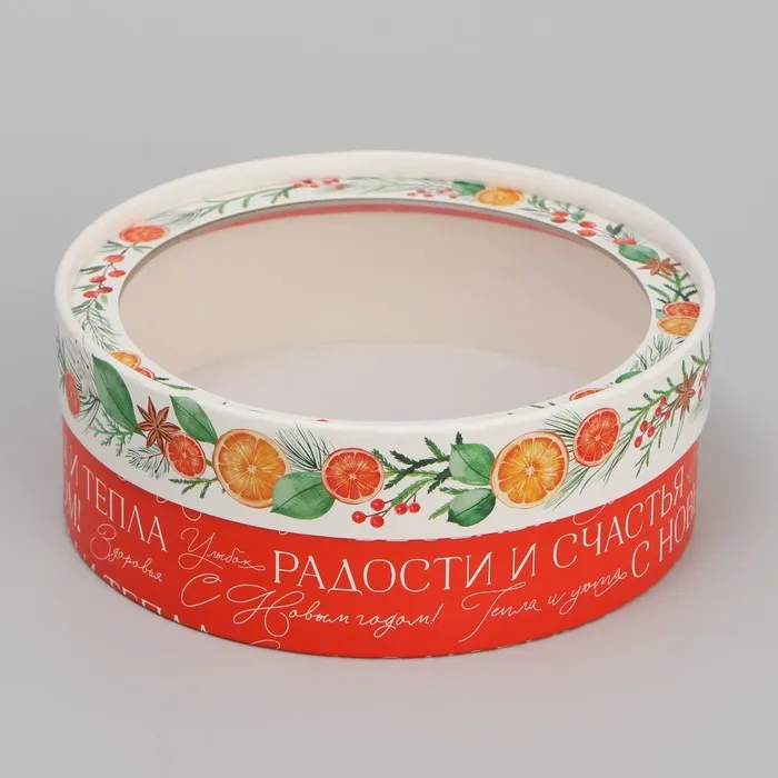 Коробка для макарун тубус с окном «Новогодние пожелания», 16 х 16 х 5 см — Характеристики