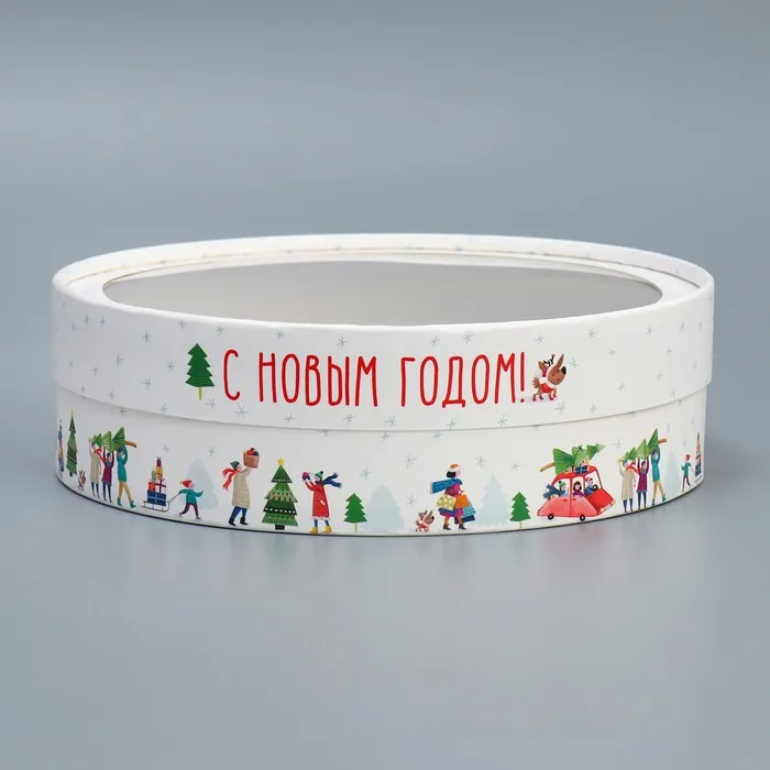 Коробка для макарун тубус с окном «С Новым годом», 20 х 20 х 5 см — Характеристики