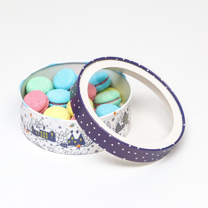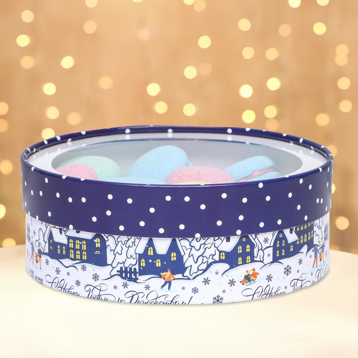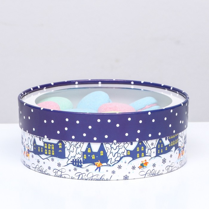 Коробка для макарун тубус с окном «С Новым годом» 21×21×7 см