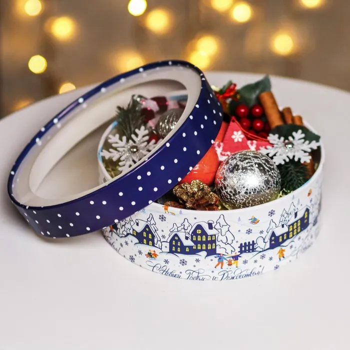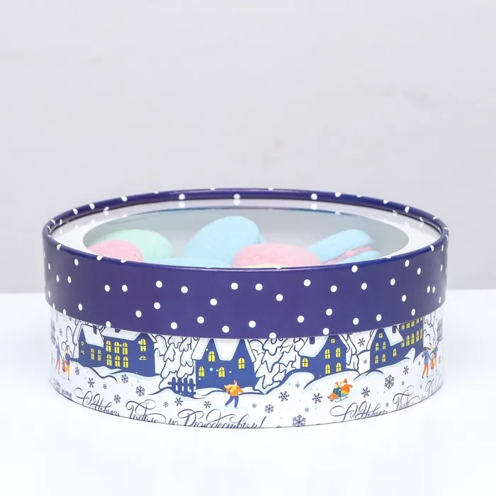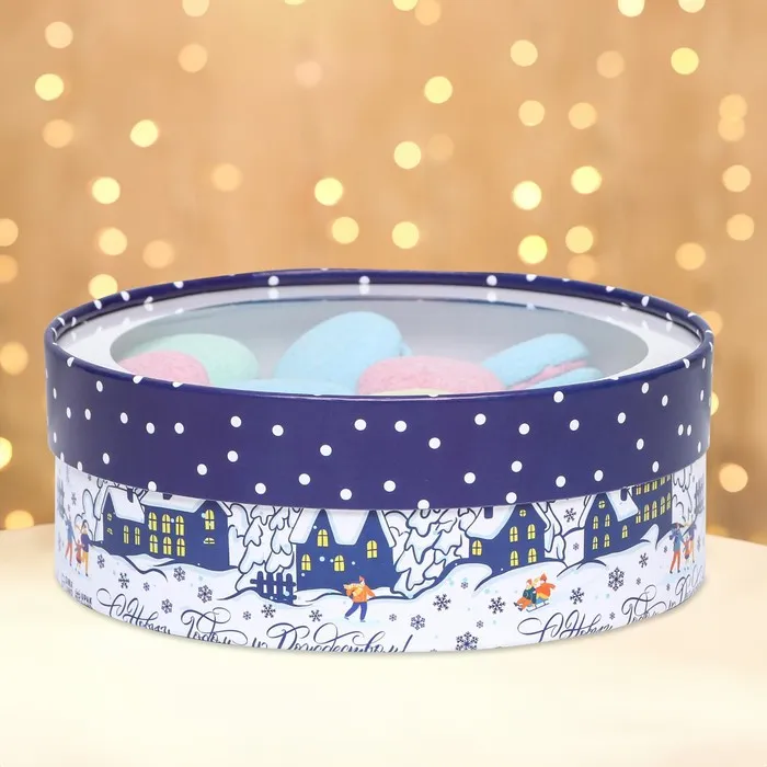 Коробка для макарун тубус с окном «С Новым годом» 21×21×7 см — Характеристики