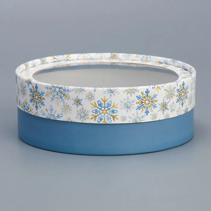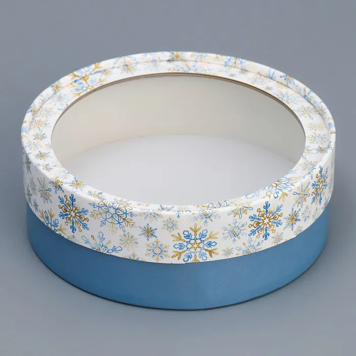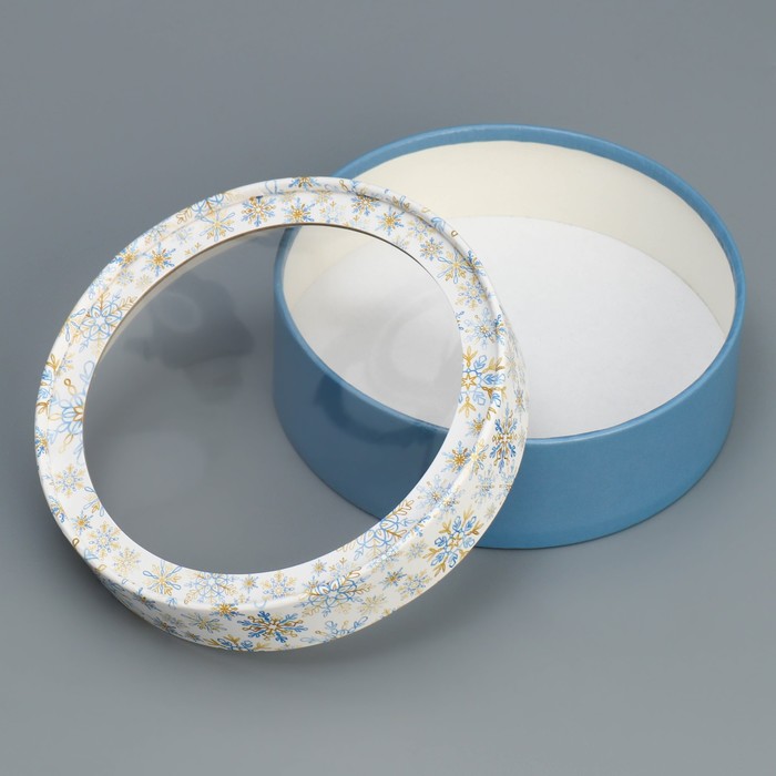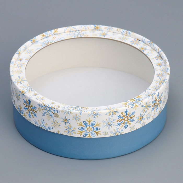 Коробка для макарун тубус с окном «Снежинки», 16 х 16 х 5 см