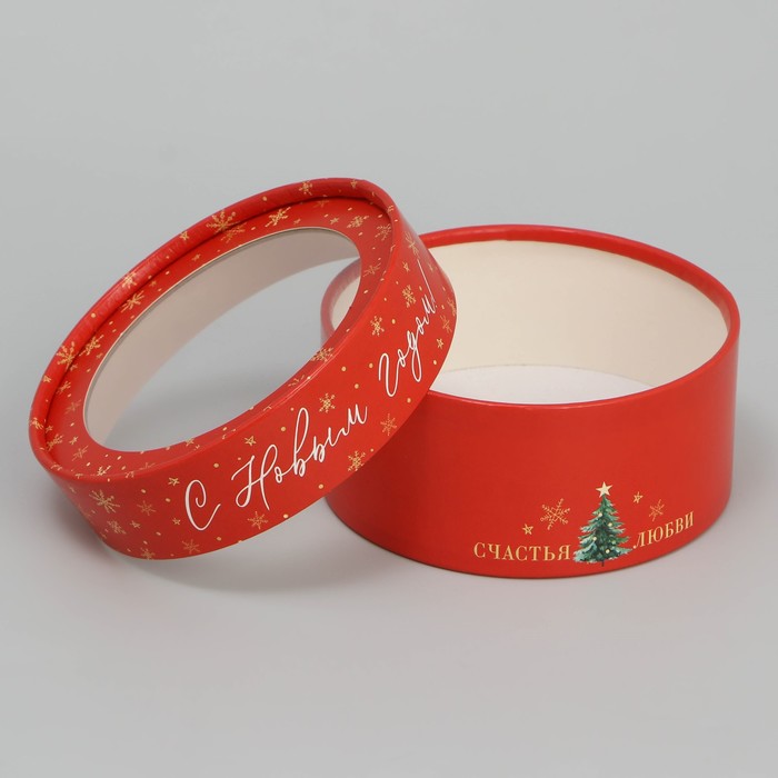 Коробка для макарун тубус с окном «Тепла и уюта», 12 х 12 х 5 см