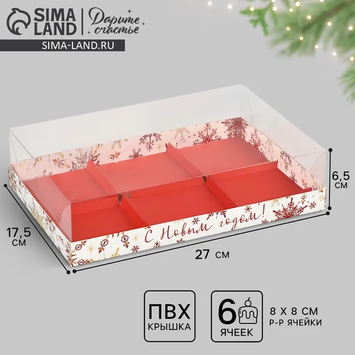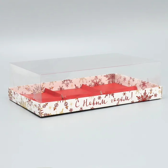 Коробка для муссовых пирожных «С Новым годом!», снежинки, 27 х 17.5 х 6.5 см — Характеристики