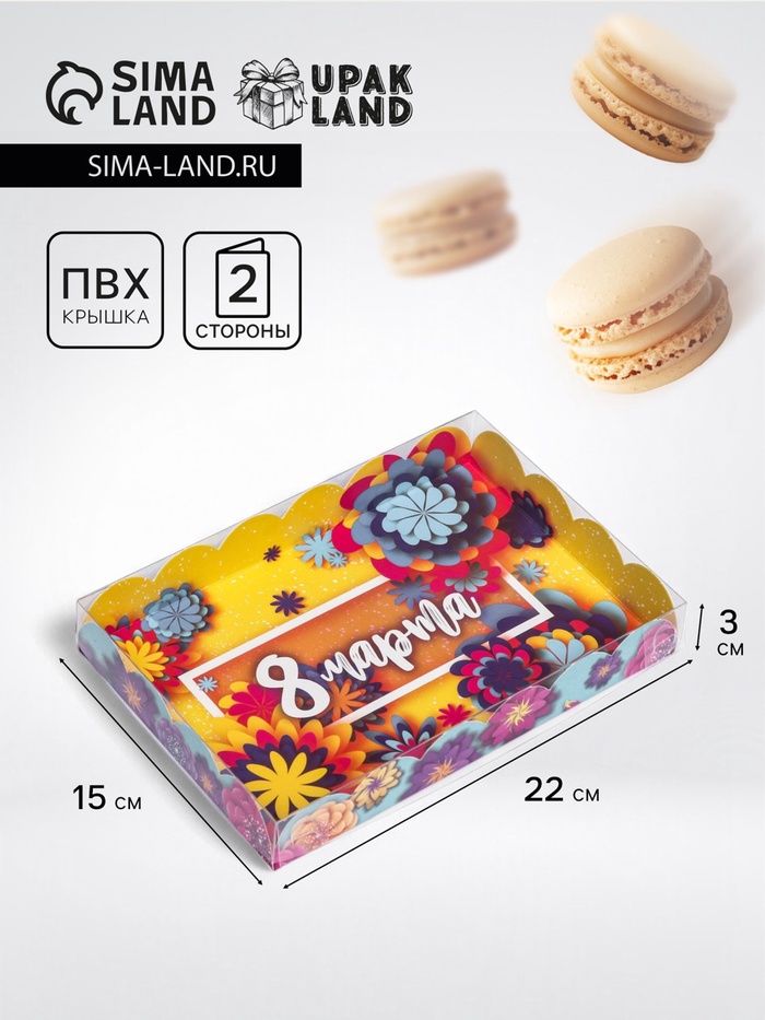 Коробка для печенья, 8 марта" 22×15×3 — Характеристики