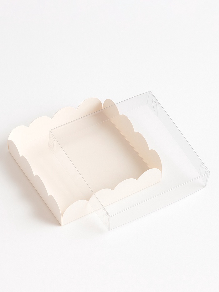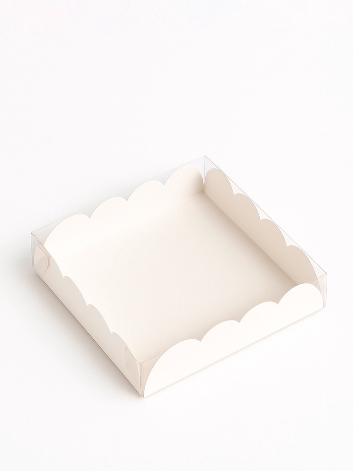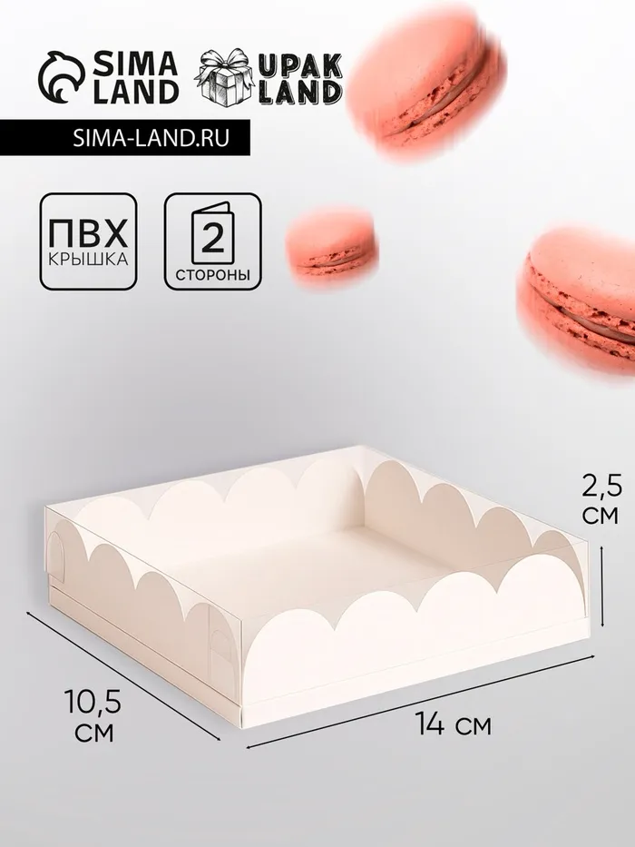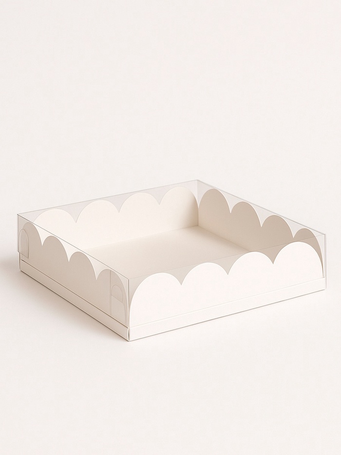 Коробка для печенья с прозрачной крышкой, можно видеть содержимое коробки. Прекрасно подойдет для десертов, можно использовать для праздничного декора.