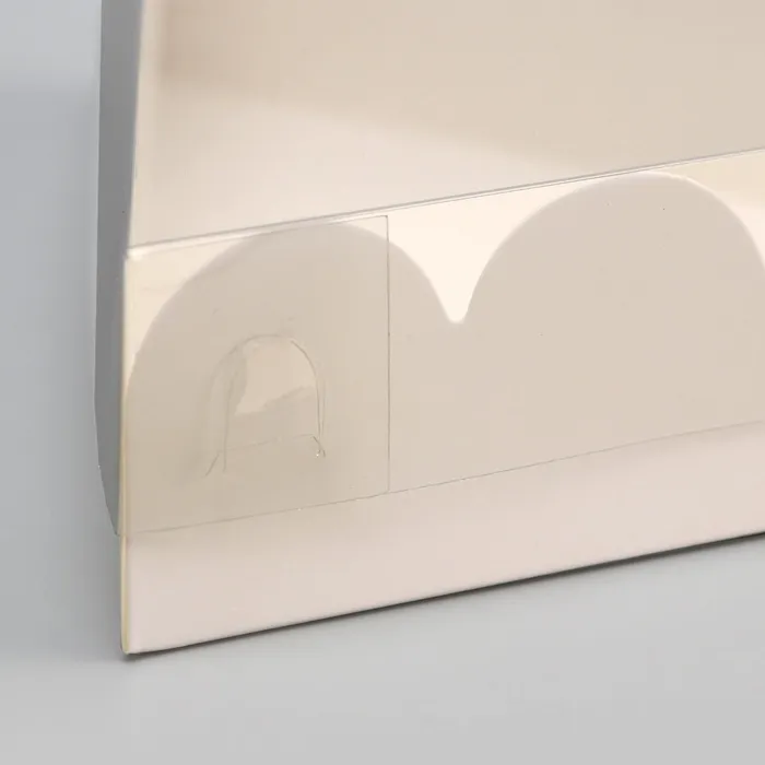 Коробка для печенья с прозрачной крышкой, можно видеть содержимое коробки. Прекрасно подойдет для десертов, можно использовать для праздничного декора.