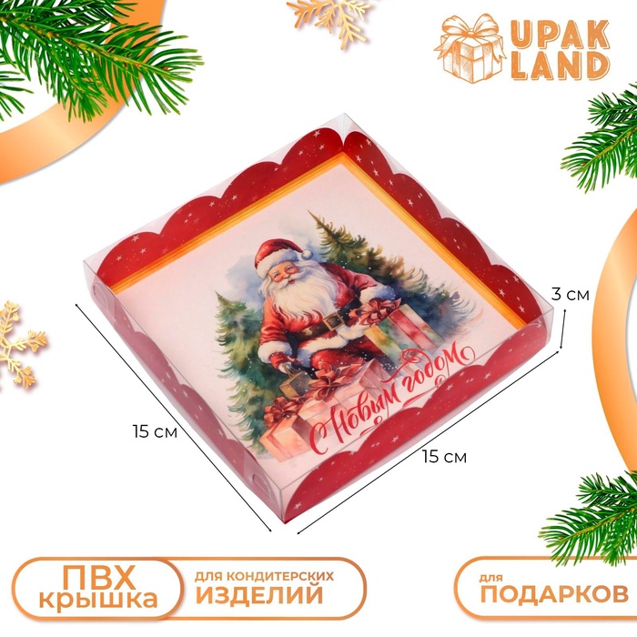 Коробка для печенья, «Дед Мороз», 15×15×3 см, Новый год — Характеристики
