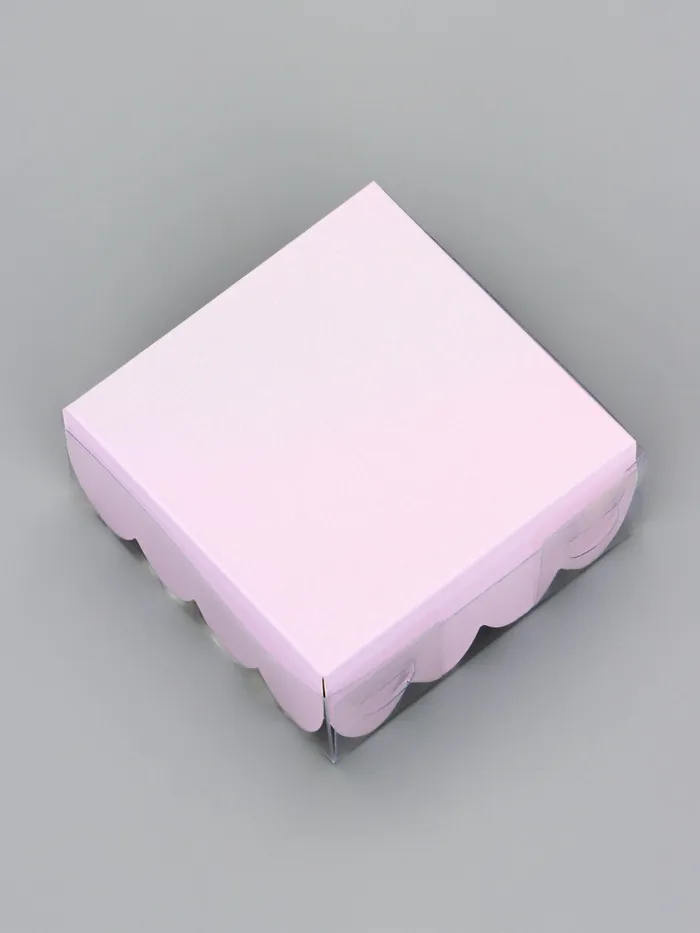 Прочный картон обеспечивает надежную защиту содержимого, а прозрачная крышка позволяет сразу оценить внешний вид угощений без необходимости открывать коробку.