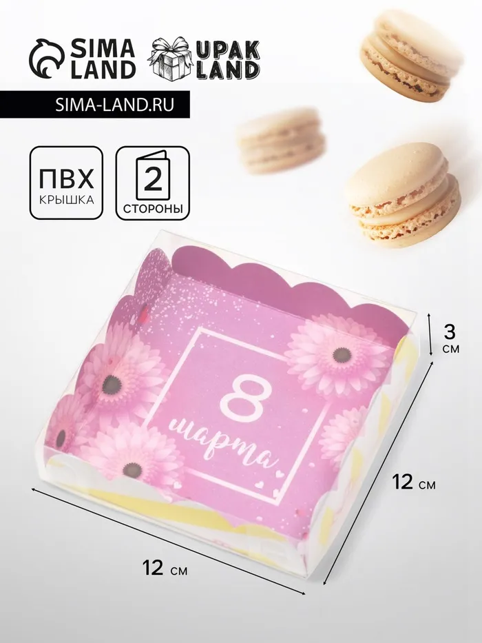 Коробка для печенья, «К женскому дню», 12×12×3 см — Характеристики