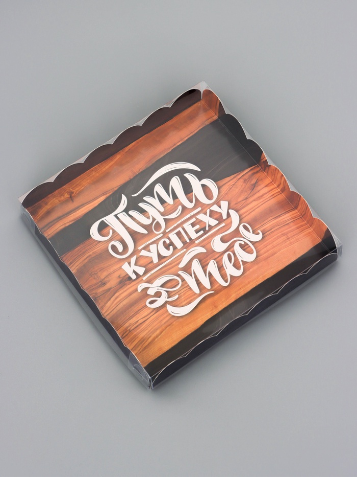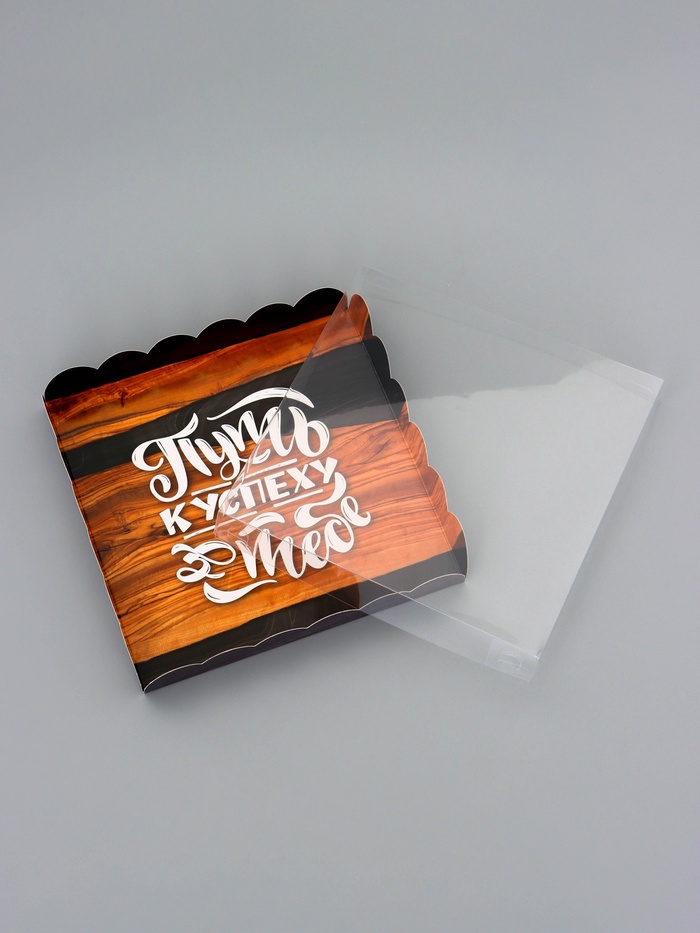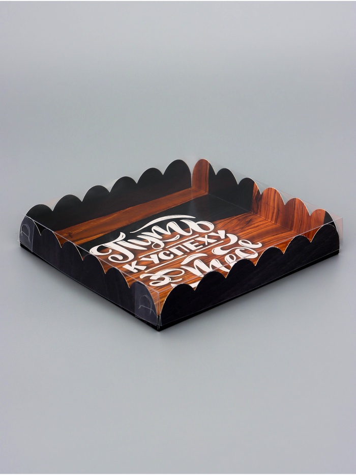Прочный картон обеспечивает надежную защиту содержимого, а прозрачная крышка позволяет сразу оценить внешний вид угощений без необходимости открывать коробку.
