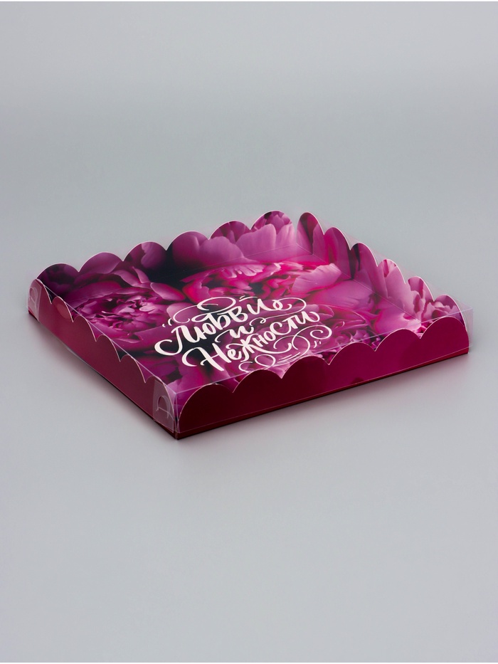 Прочный картон обеспечивает надежную защиту содержимого, а прозрачная крышка позволяет сразу оценить внешний вид угощений без необходимости открывать коробку.