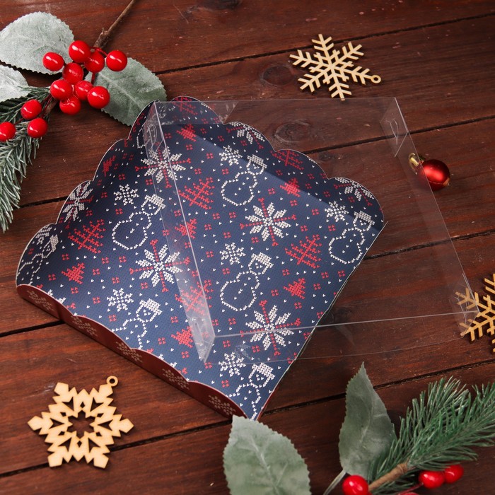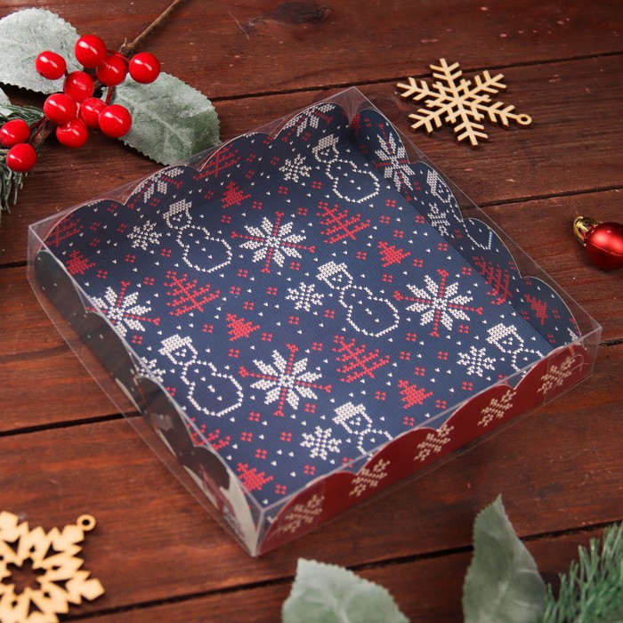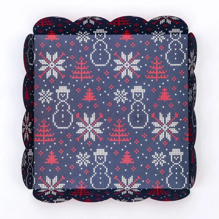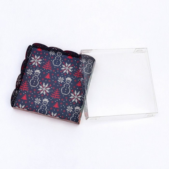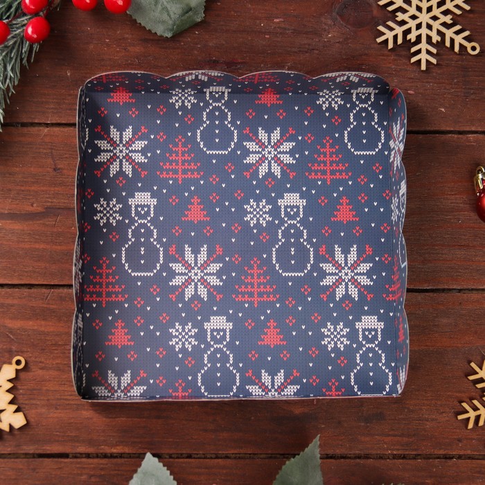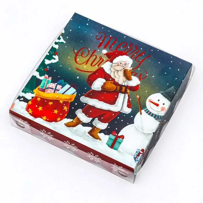 Коробка для печенья, кондитерская новогодняя упаковка, «Дед Мороз у ёлочки», 15×15×3 см — Характеристики