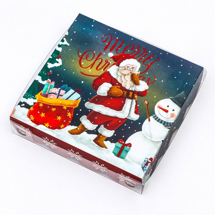 Коробка для печенья, кондитерская новогодняя упаковка, «Дед Мороз у ёлочки», 15×15×3 см