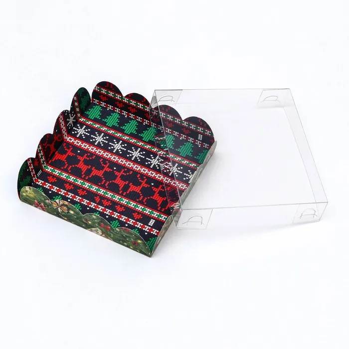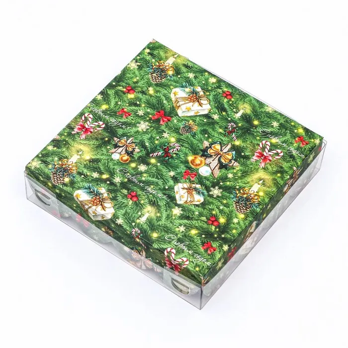 Коробка для печенья, кондитерская новогодняя упаковка, «Елочные украшения», 12×12×3 см — Характеристики