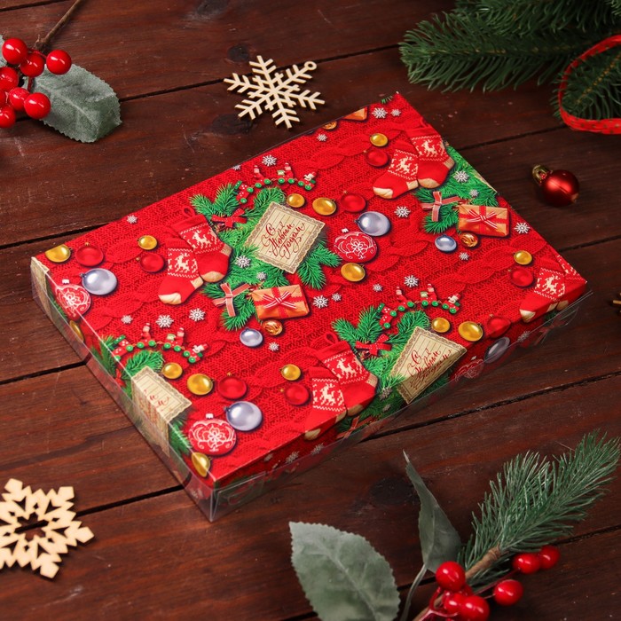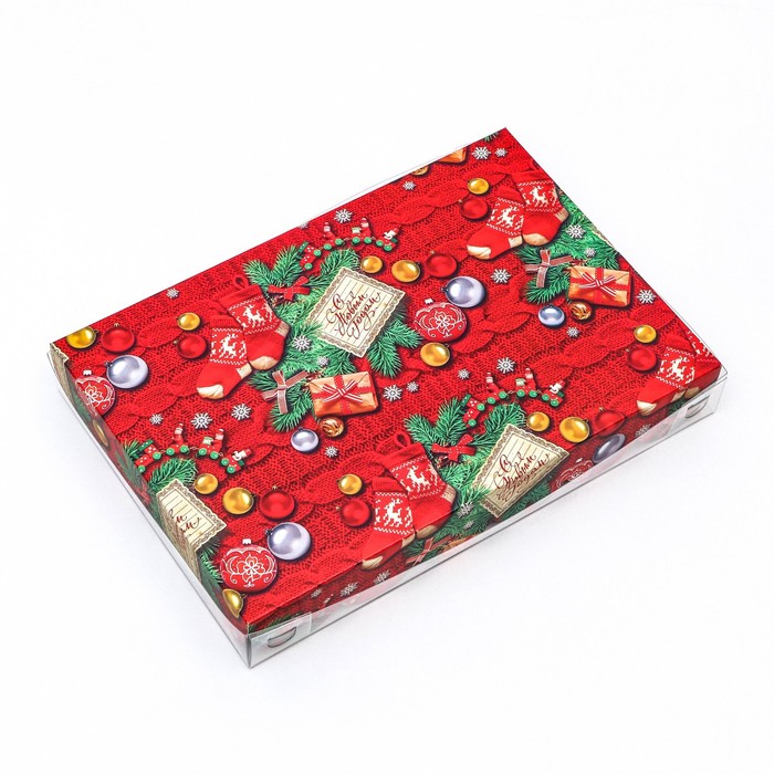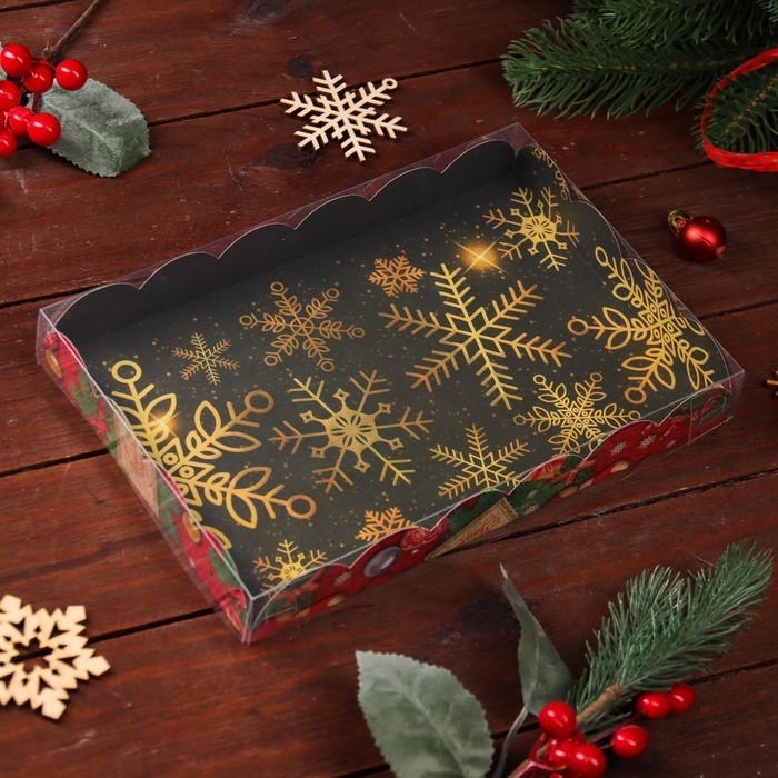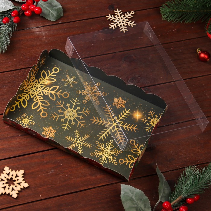 Коробка для печенья, кондитерская новогодняя упаковка, «Снежинки», 22×15×3 см