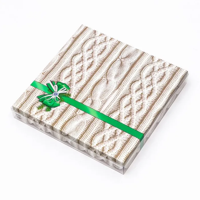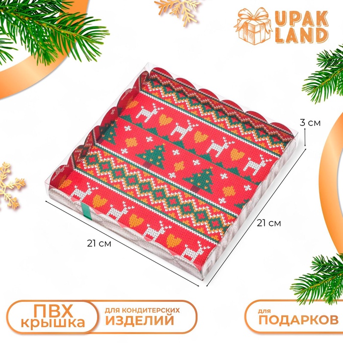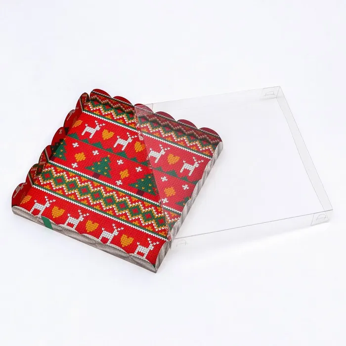 Коробка для печенья, кондитерская новогодняя упаковка, «Вязанка», 21×21×3 см — Характеристики