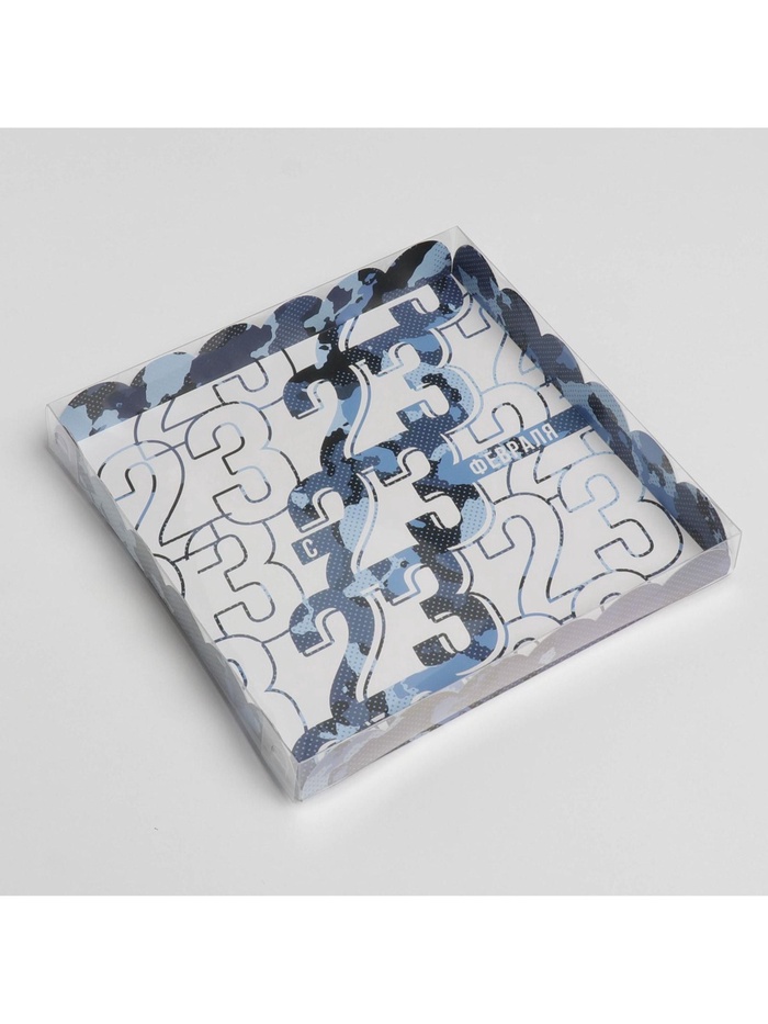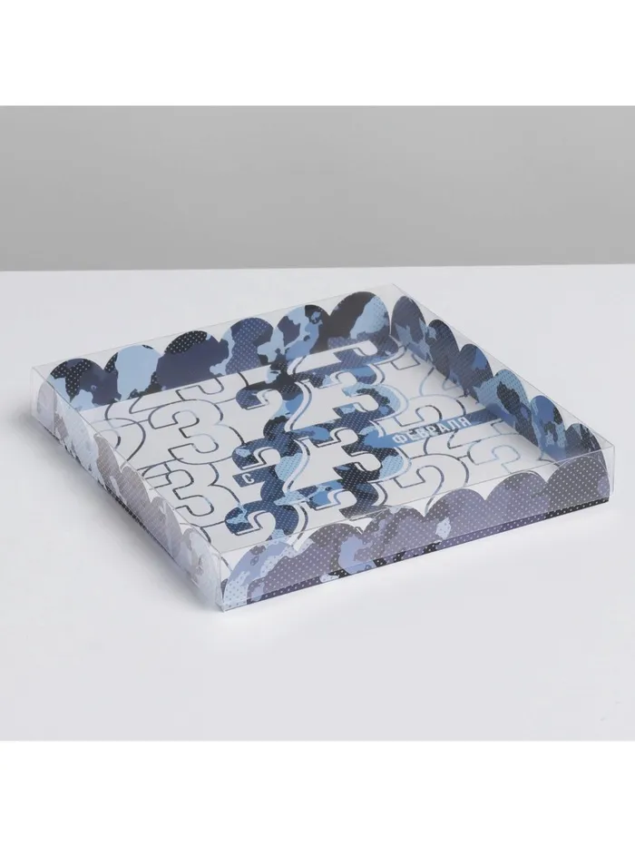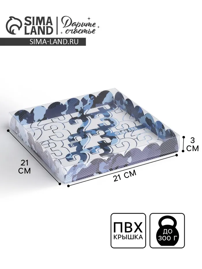 Коробка для печенья, кондитерская упаковка с пластиковой крышкой, «23 февраля», 21 х21 х 3 см — Характеристики