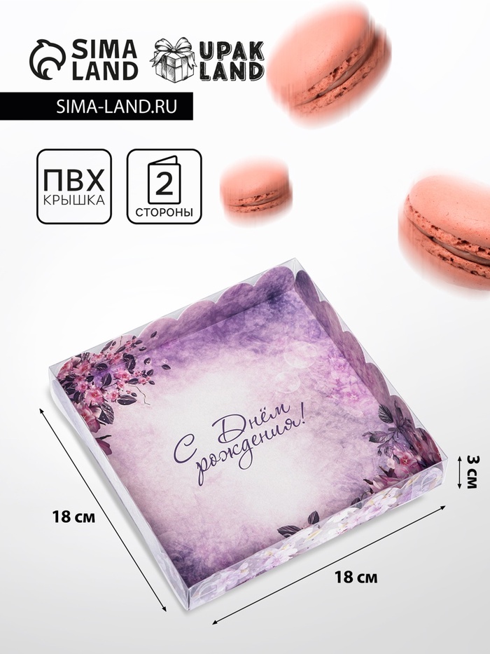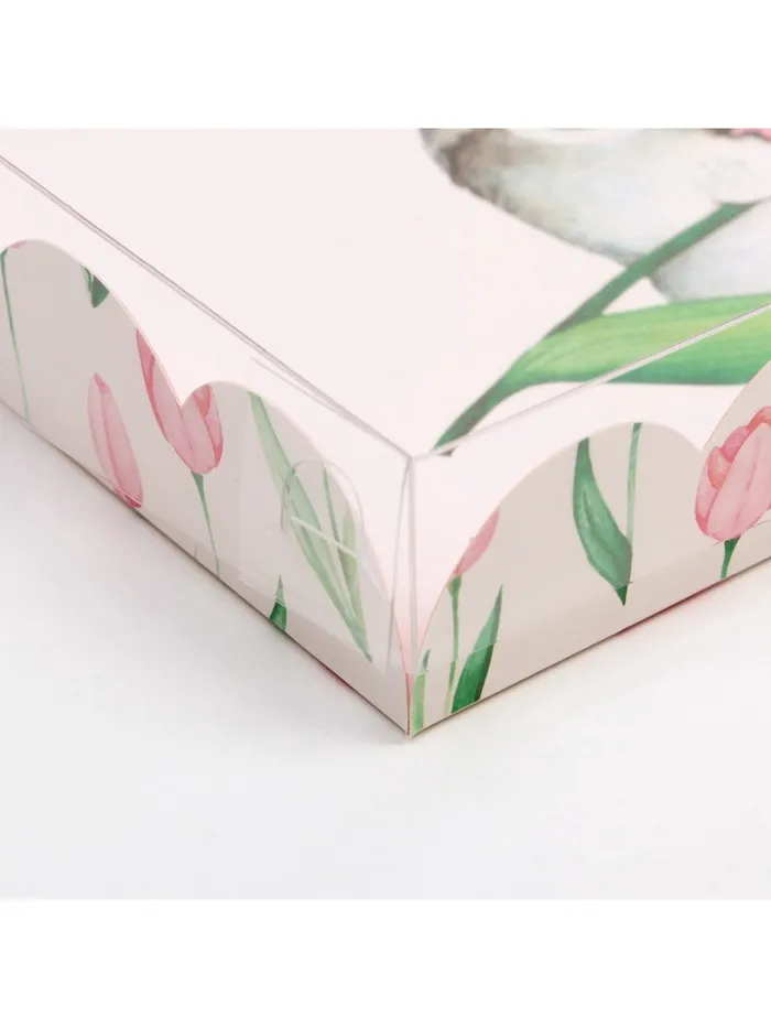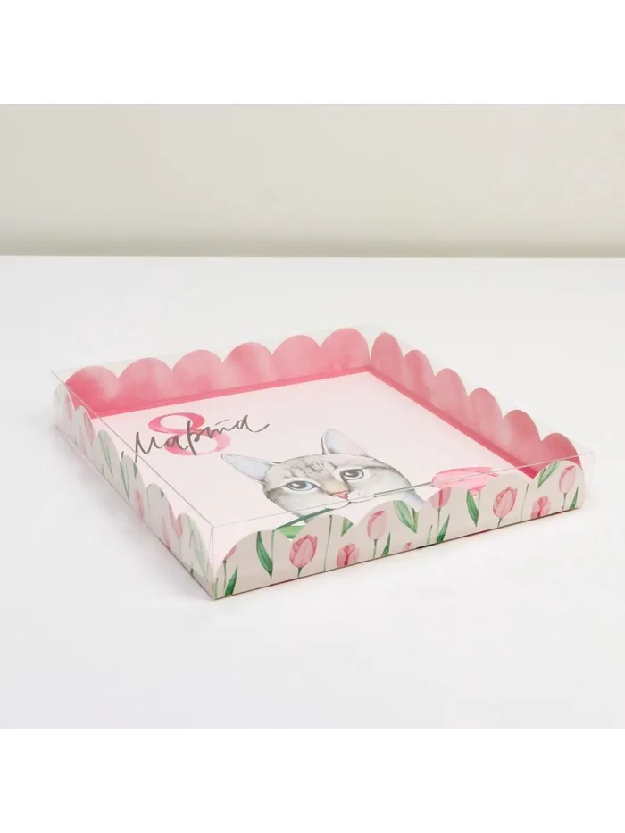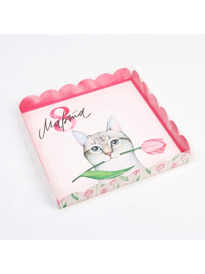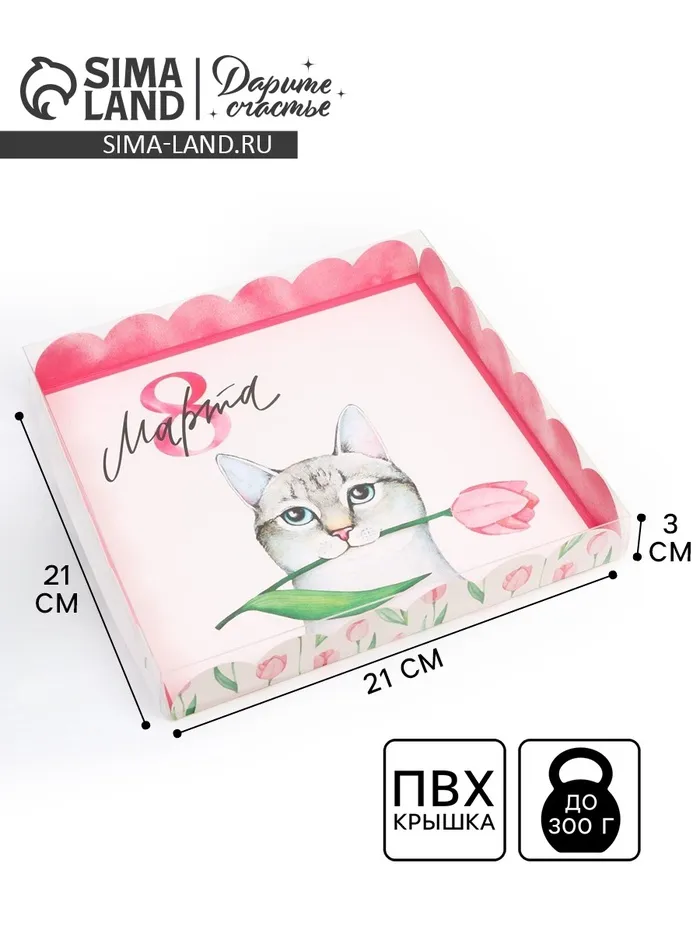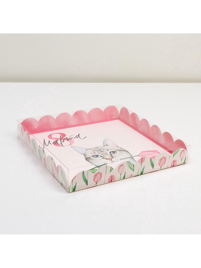 Коробка для печенья, кондитерская упаковка с пластиковой крышкой, «8 марта», 21×21×3 см — Характеристики