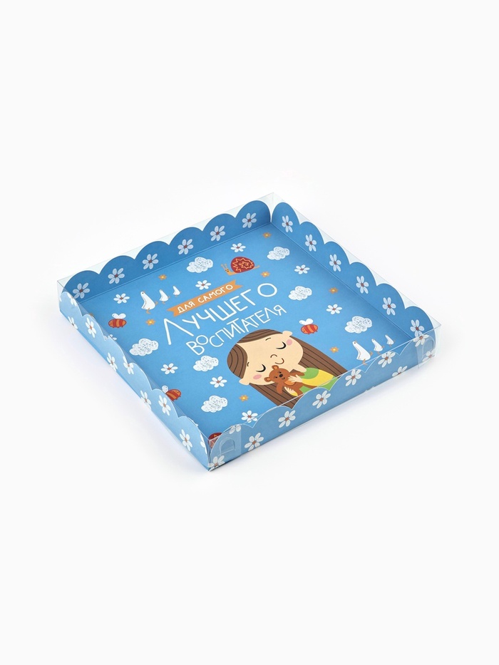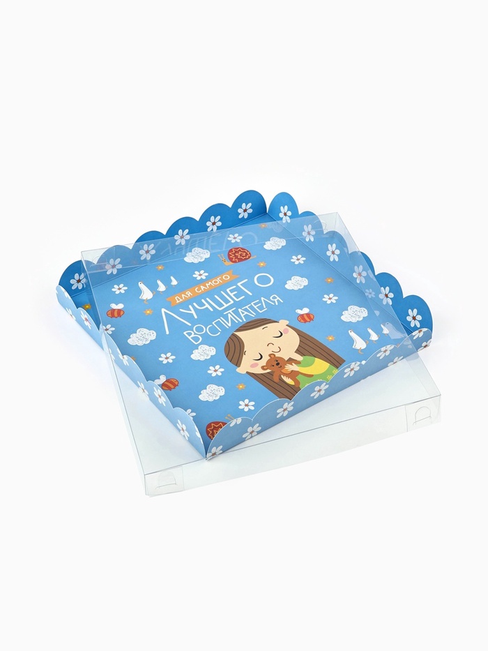 Коробка для печенья, кондитерская упаковка с пластиковой крышкой, «Для самого лучшего воспитателя», 21 х 21 х 3 см — Характеристики