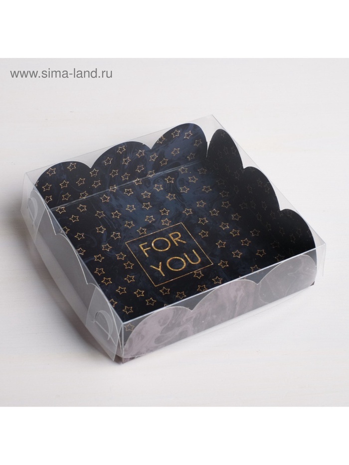 Коробка для печенья, кондитерская упаковка с пластиковой крышкой, For you, 10.5 х 10.5 х 3 см — Характеристики