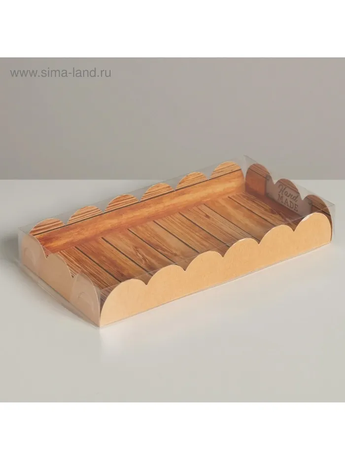 Коробка для печенья, кондитерская упаковка с пластиковой крышкой, Hand made, 10.5 х 21 х 3 см — Характеристики