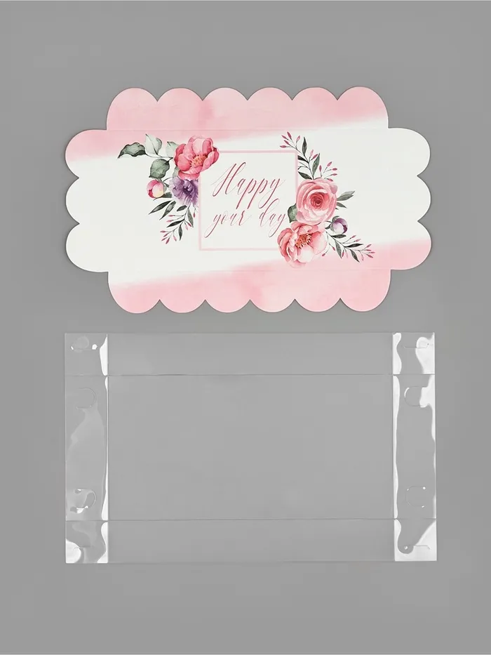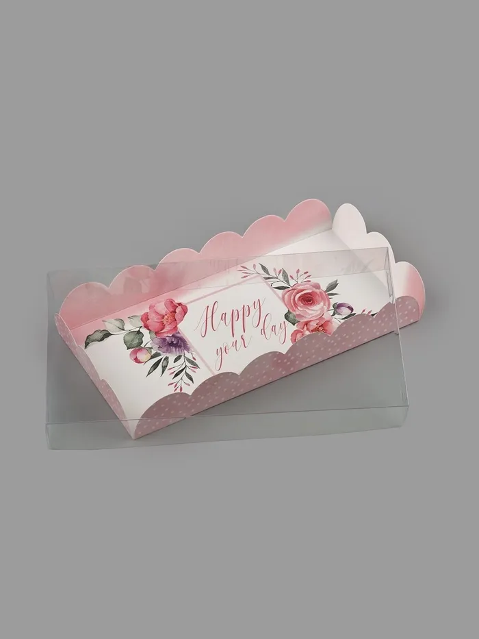 Коробка для печенья, кондитерская упаковка с пластиковой крышкой, Happy your day, 21 х 10.5 х 3 см — Характеристики