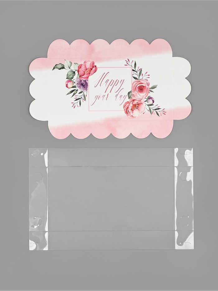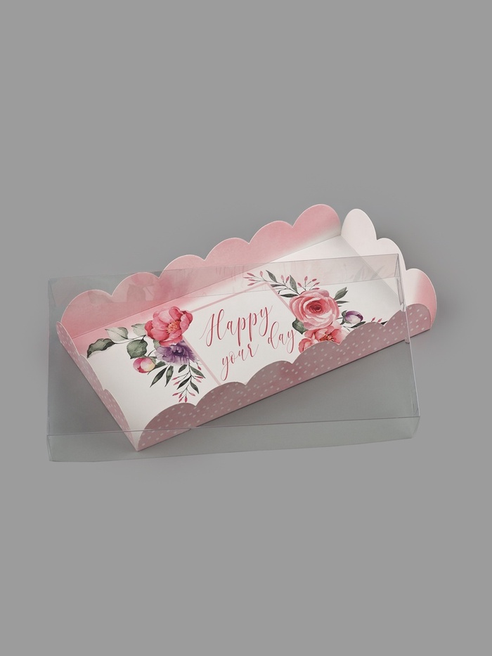 Коробка для печенья, кондитерская упаковка с пластиковой крышкой, Happy your day, 21 х 10.5 х 3 см