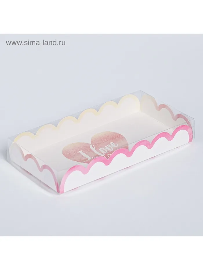 Коробка для печенья, кондитерская упаковка с пластиковой крышкой, I love you, 21 х 10.5 х 3 см — Характеристики