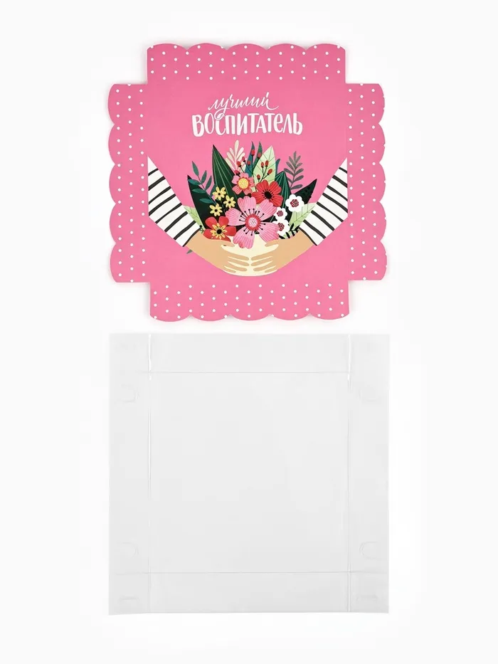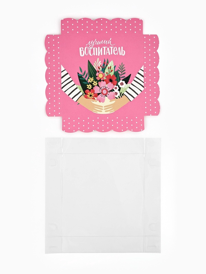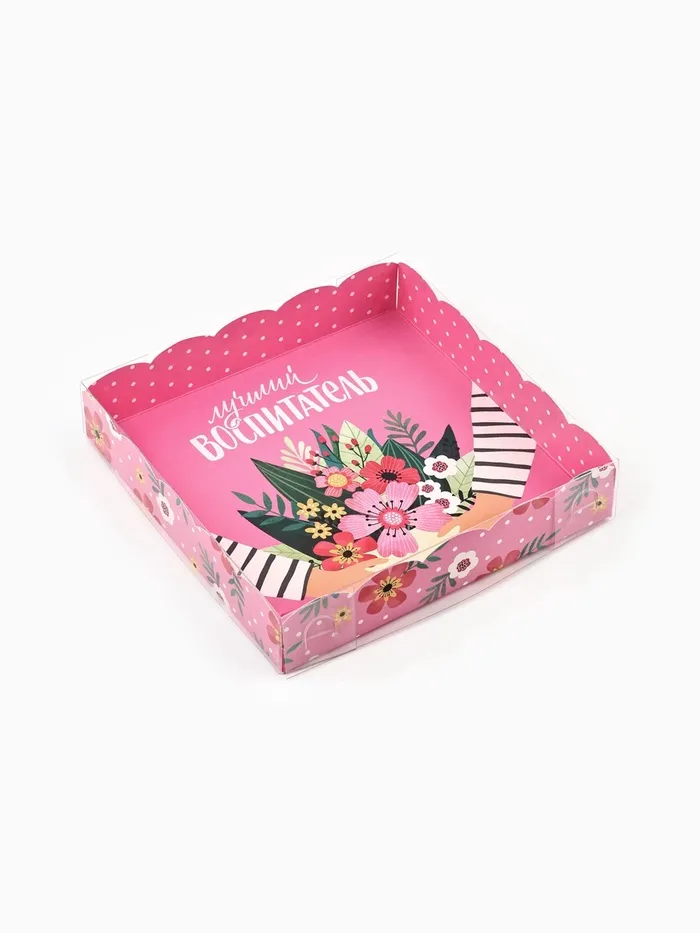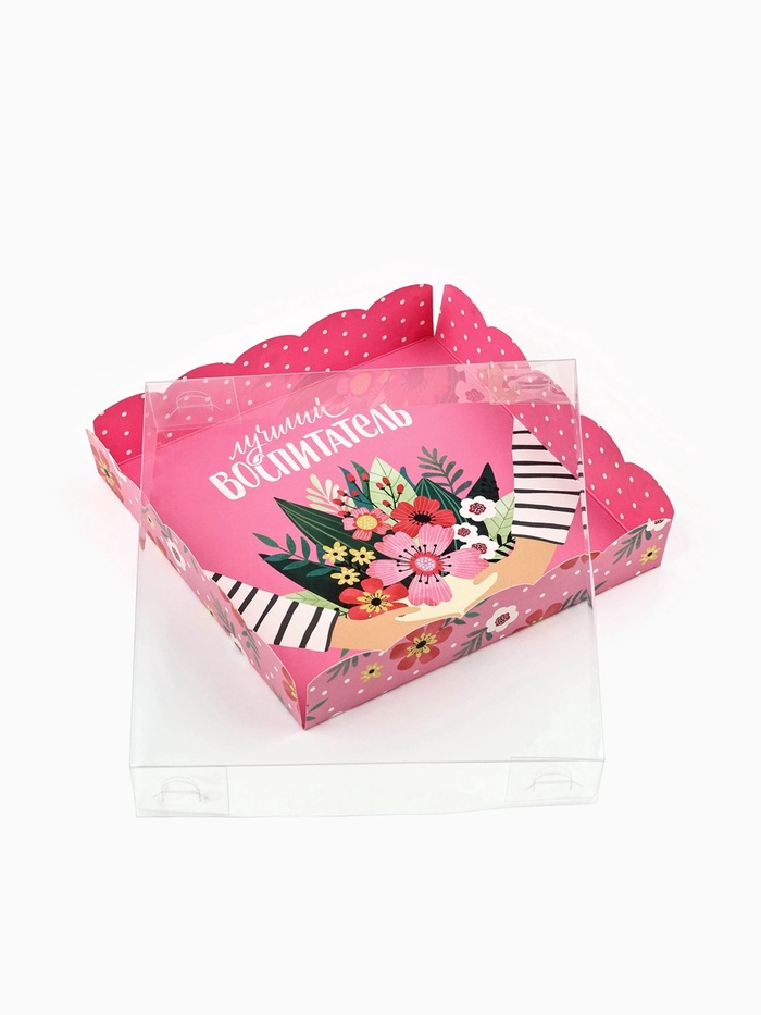 Коробка для печенья, кондитерская упаковка с пластиковой крышкой, «Лучший воспитатель», 15 х 15 х 3 см — Характеристики