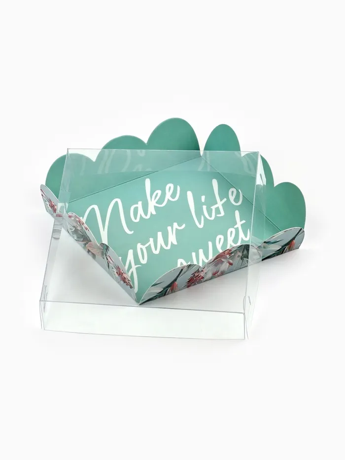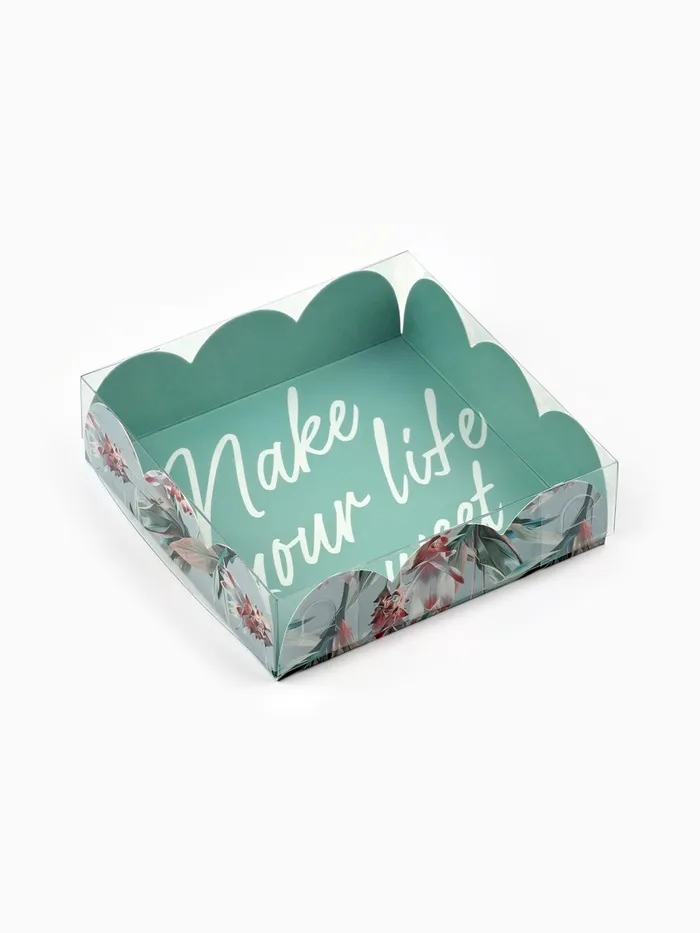 Коробка для печенья, кондитерская упаковка с пластиковой крышкой, Make your life sweet, 10.5 х 10.5 х 3 см — Характеристики