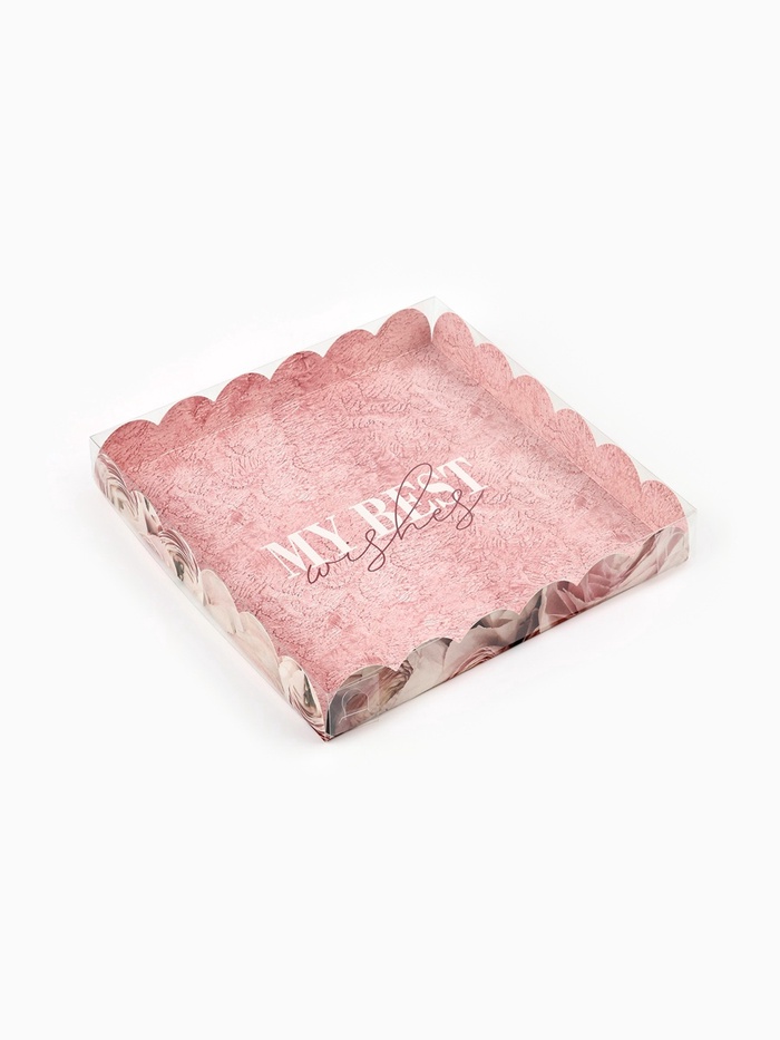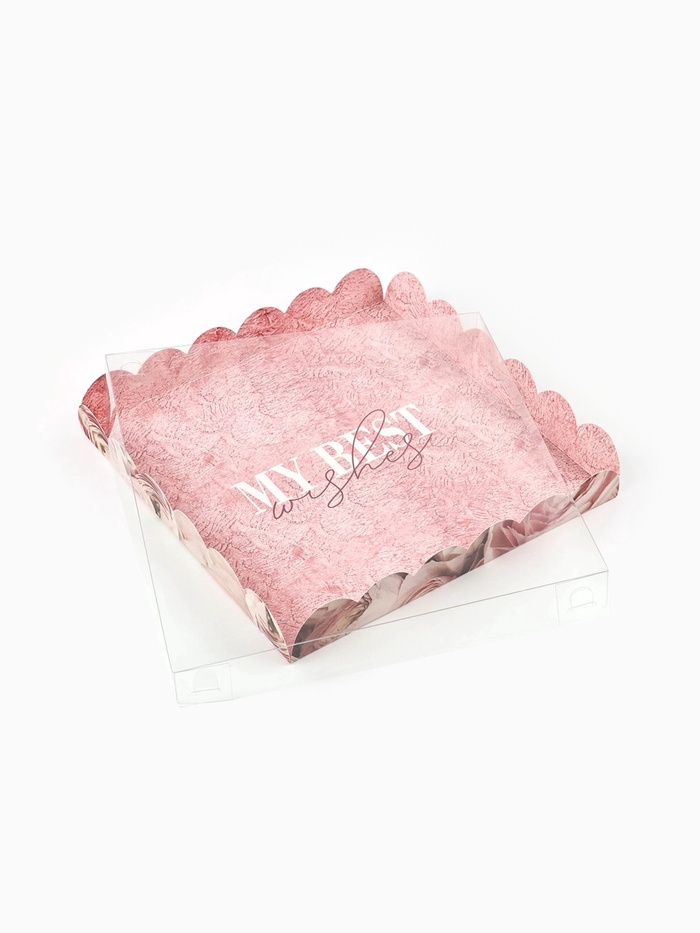 Коробка для печенья, кондитерская упаковка с пластиковой крышкой, My best wishes, 21 х 21 х 3 см — Характеристики