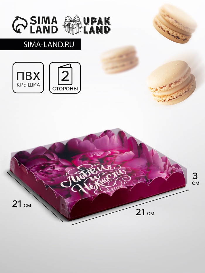Коробка для печенья, кондитерская упаковка с пластиковой крышкой, «Пчёлка», 10.5 х 21 х 3 см — Характеристики