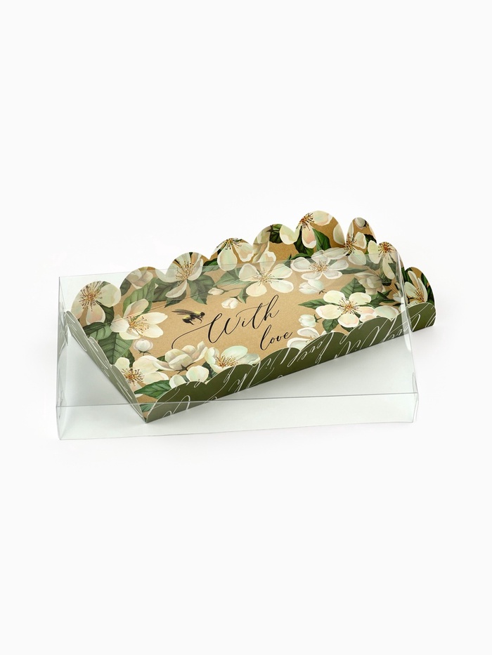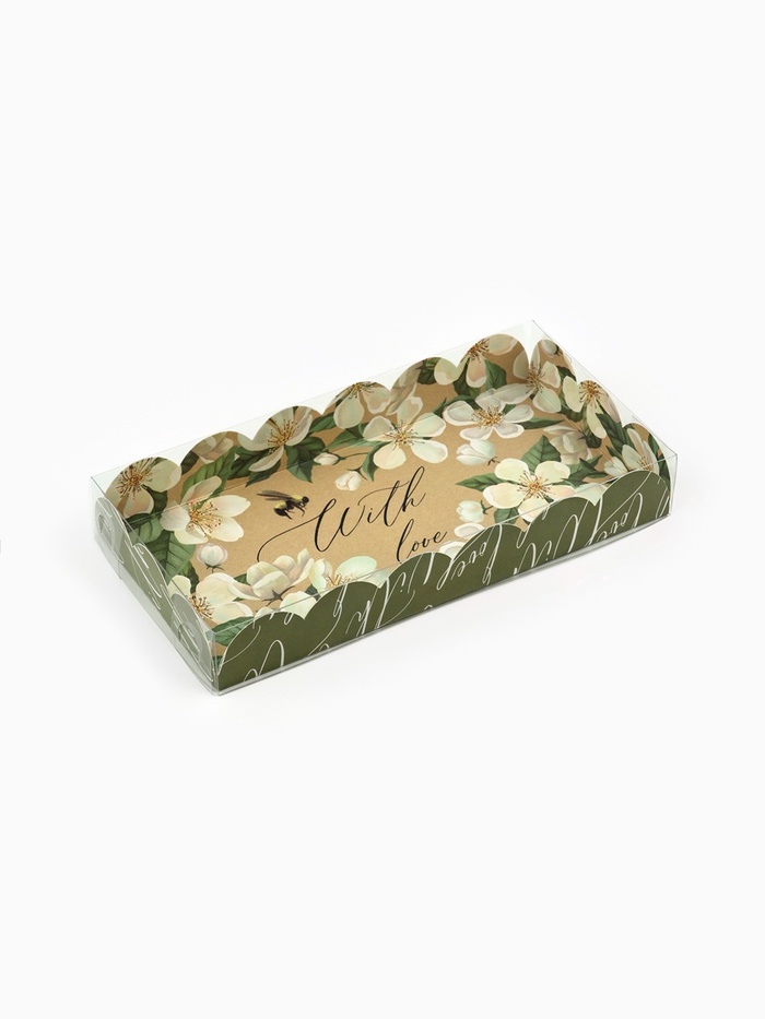Коробка для печенья, кондитерская упаковка с пластиковой крышкой, «Пчёлка», 10.5 х 21 х 3 см