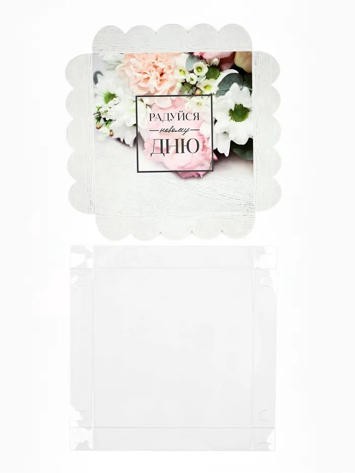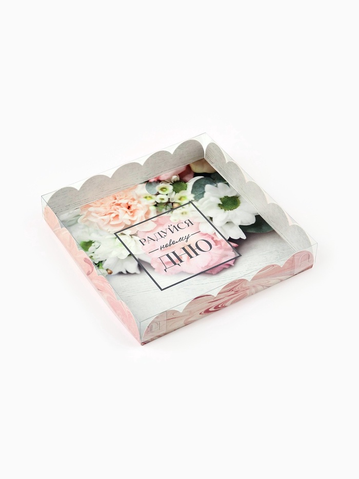 Коробка для печенья, кондитерская упаковка с пластиковой крышкой, «Радуйся новому дню», 18 х 18 х 3 см — Характеристики
