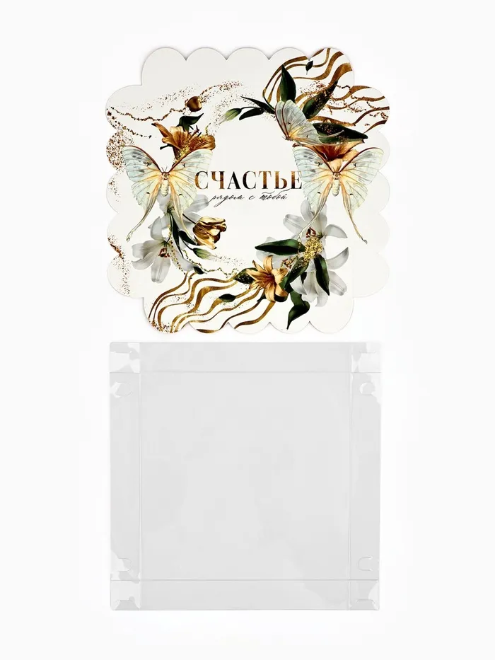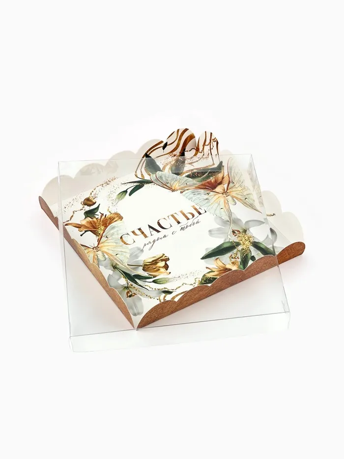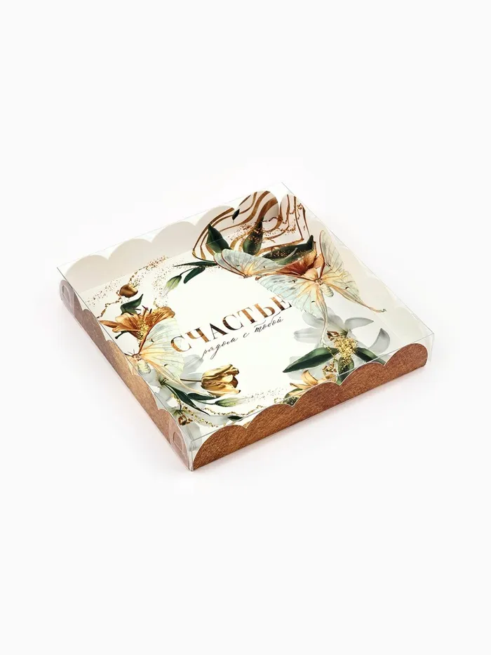 Коробка для печенья, кондитерская упаковка с пластиковой крышкой, «Счастье рядом с тобой», 18 х 18 х 3 см — Характеристики