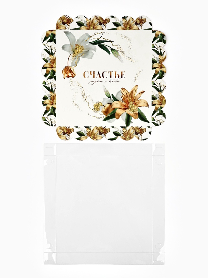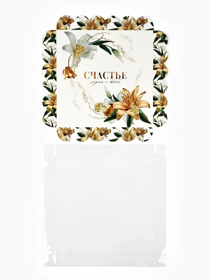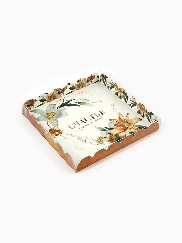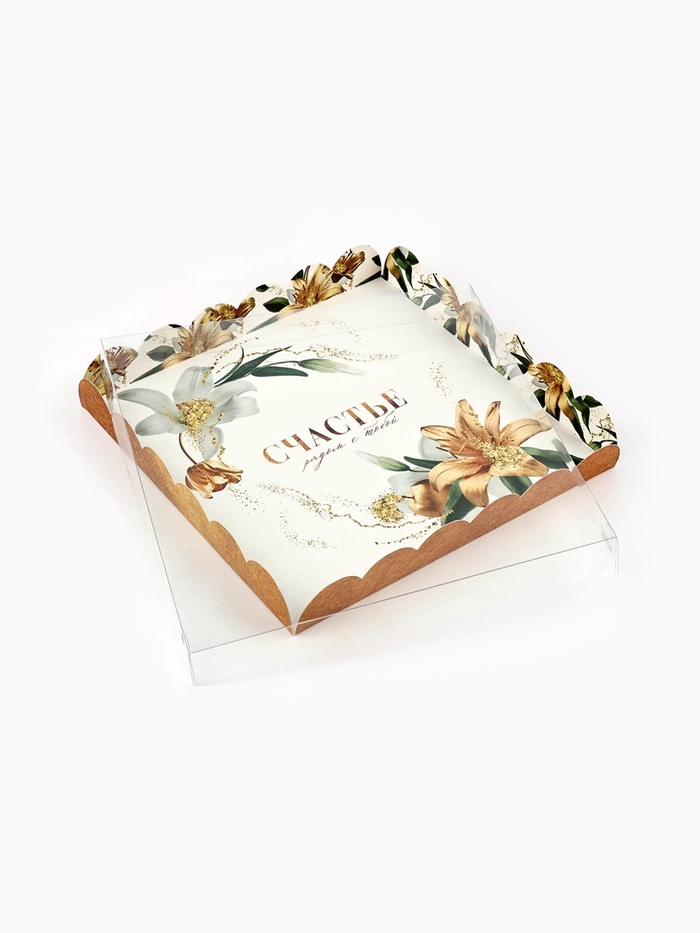 Коробка для печенья, кондитерская упаковка с пластиковой крышкой, «Счастье рядом с тобой», 21 х 21 х 3 см — Характеристики