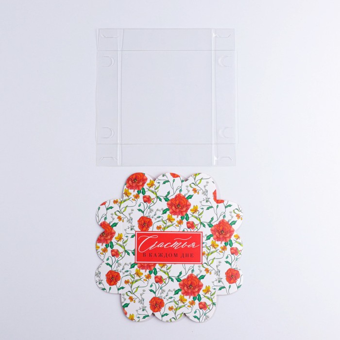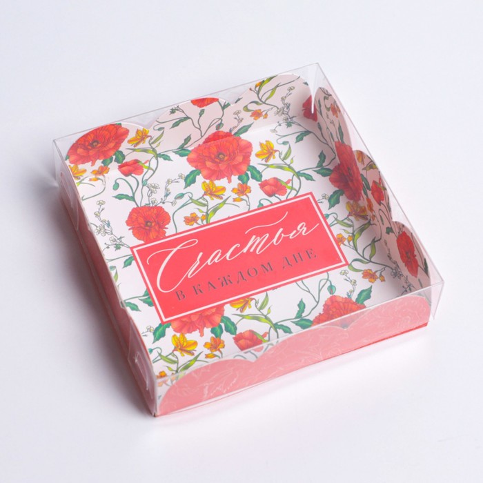 Коробка для печенья, кондитерская упаковка с пластиковой крышкой, «Счастье в каждом дне», 10.5 х 10.5 х 3 см — Характеристики