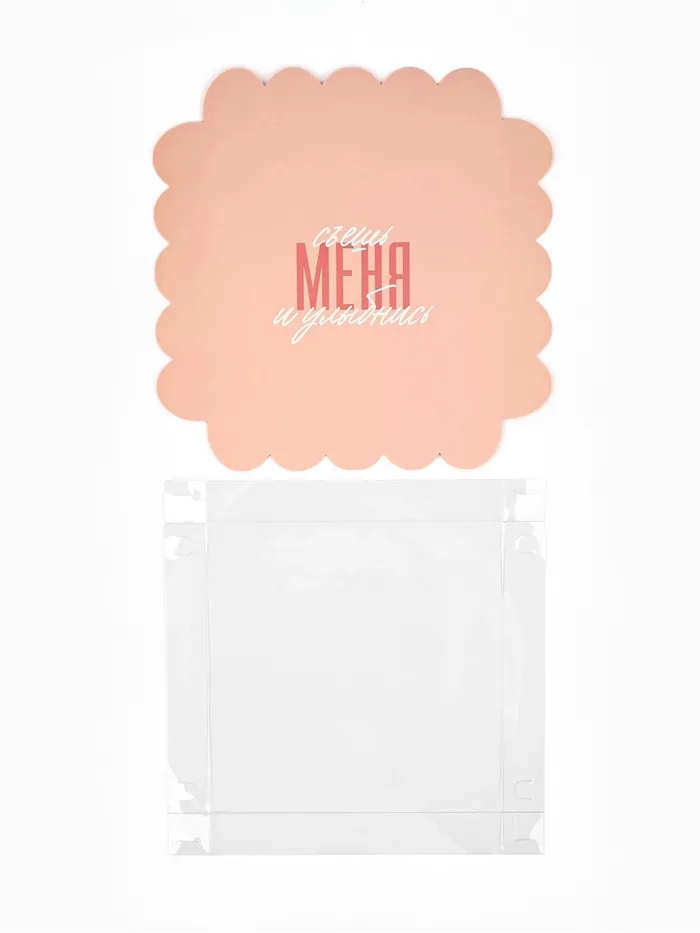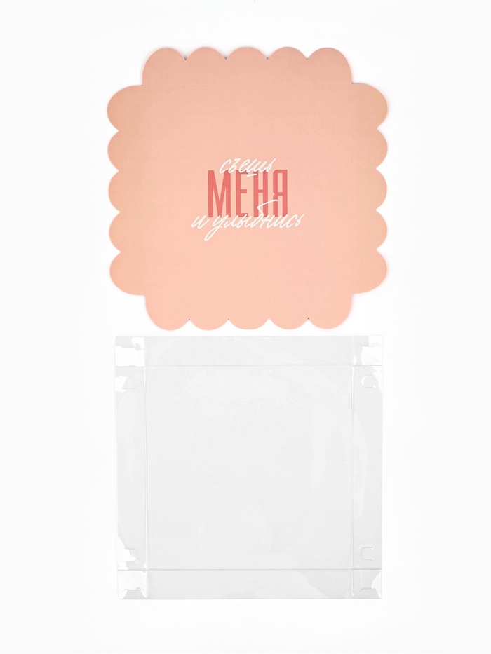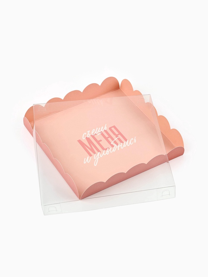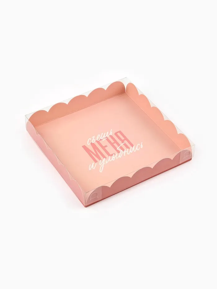 Коробка для печенья, кондитерская упаковка с пластиковой крышкой, «Съешь меня и улыбнись», 18 х 18 х 3 см — Характеристики
