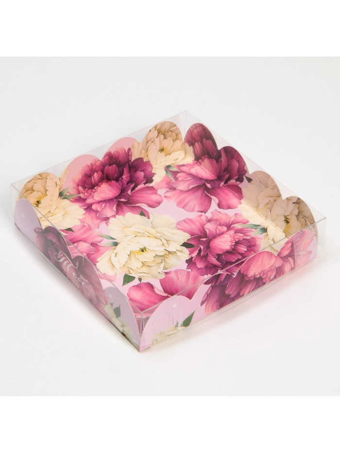 Коробка для печенья, кондитерская упаковка с пластиковой крышкой, «Тебе с любовью», 13 х 13 х 3 см — Характеристики