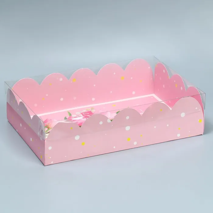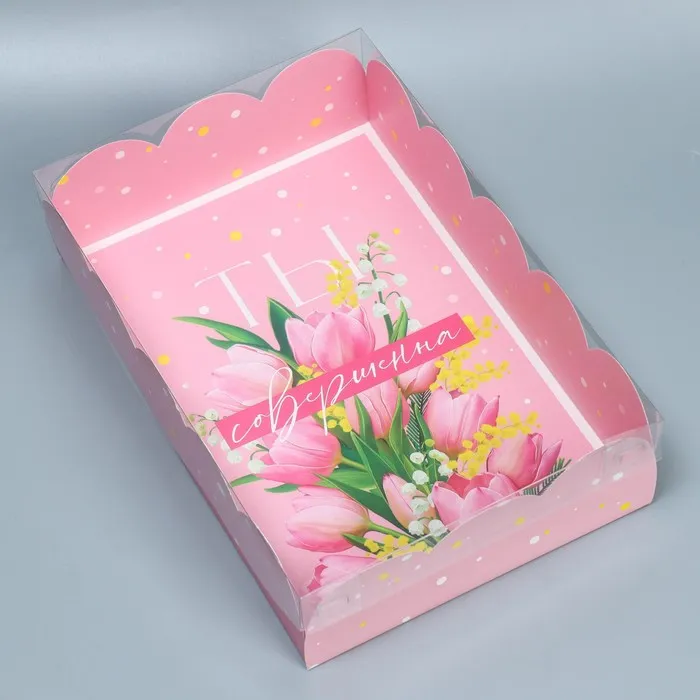 Коробка для печенья, кондитерская упаковка с пластиковой крышкой, «Тюльпаны», 20 х 30 х 8 см — Характеристики