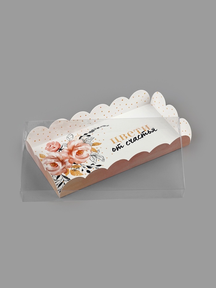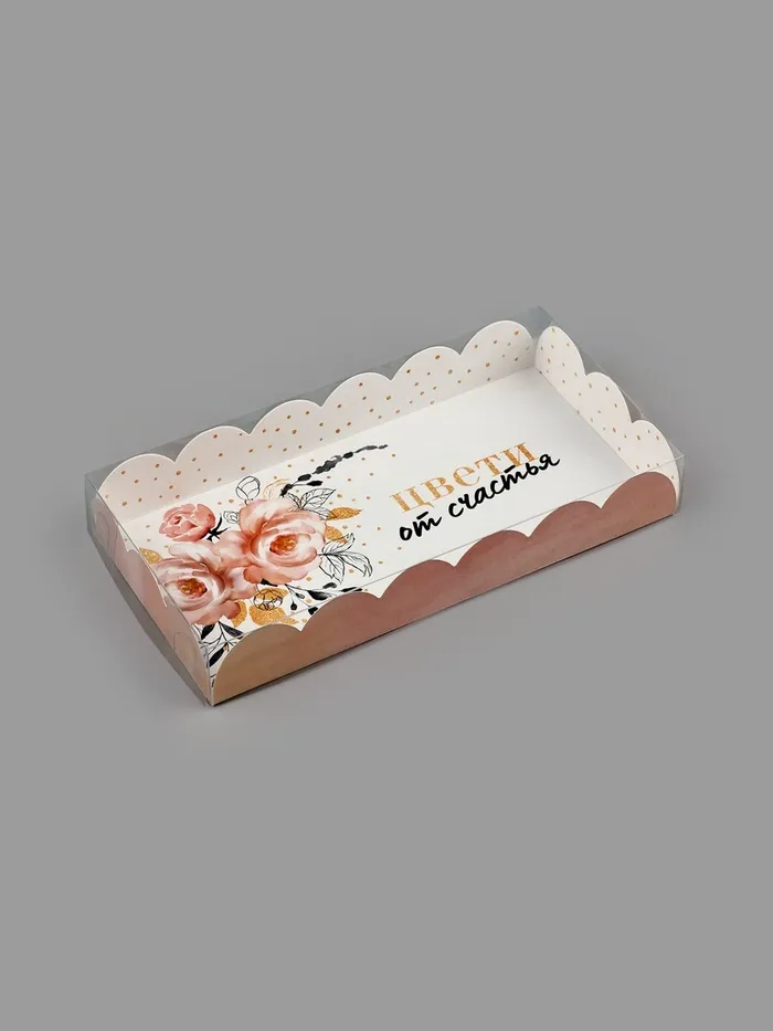 Коробка для печенья, кондитерская упаковка с пластиковой крышкой, «Цвети от счастья», 21 х 10.5 х 3 см — Характеристики