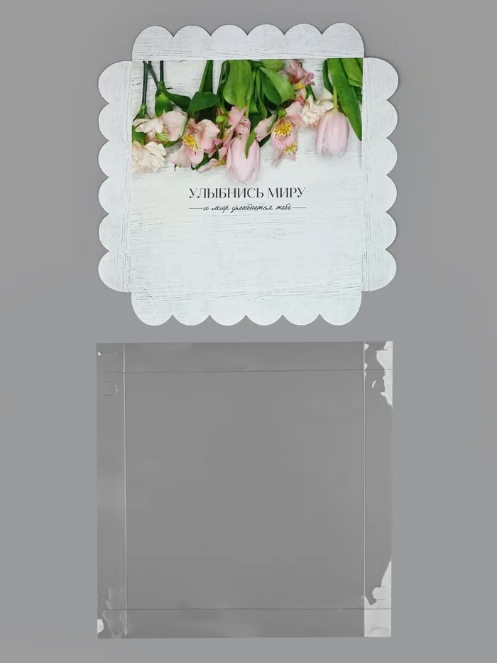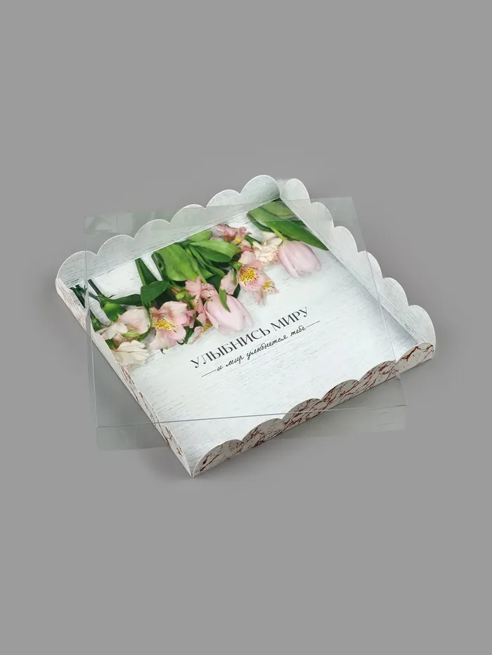 Коробка для печенья, кондитерская упаковка с пластиковой крышкой, «Улыбнись миру», 21 х 21 х 3 см — Характеристики
