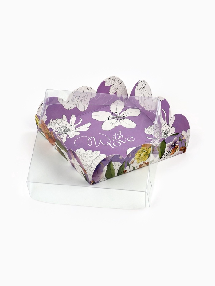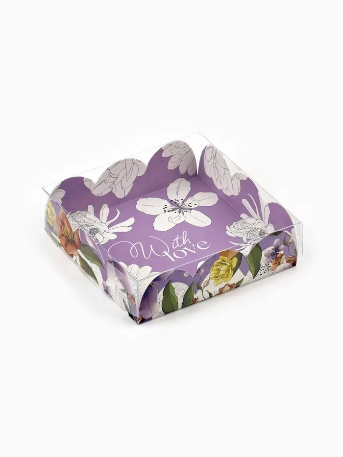 Коробка для печенья, кондитерская упаковка с пластиковой крышкой, With love, 10.5 х 10.5 х 3 см — Характеристики