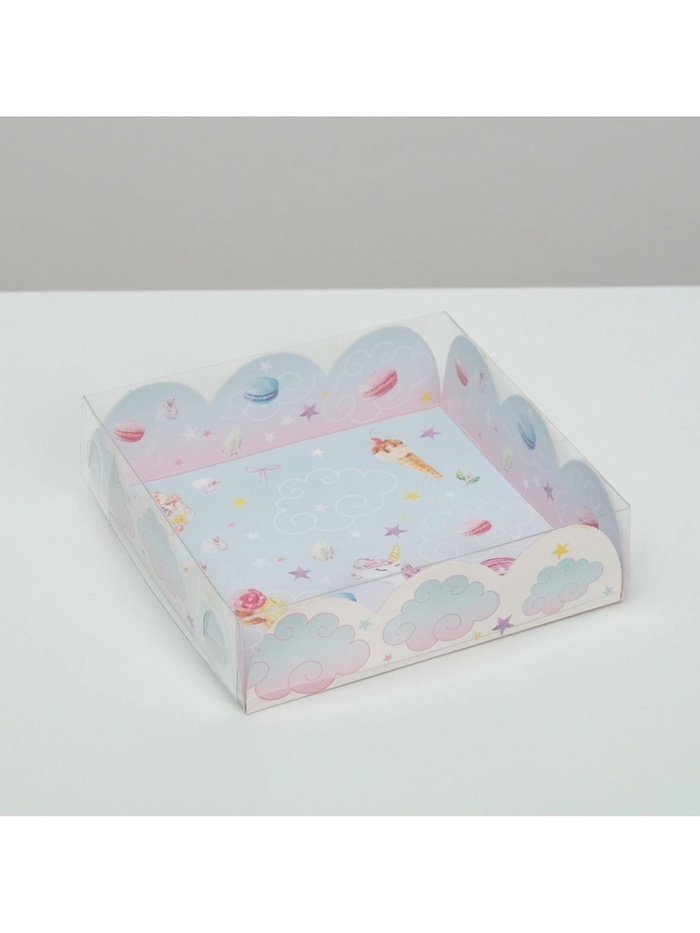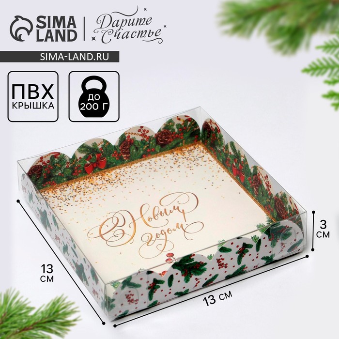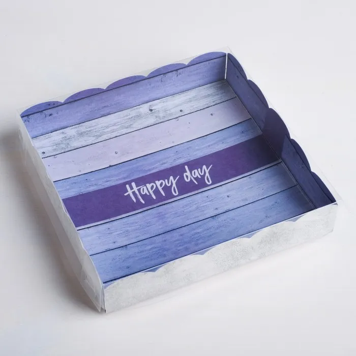 Коробка для печенья, кондитерская упаковка с PVC крышкой, Happy day, 15 х 15 х 3 см — Характеристики
