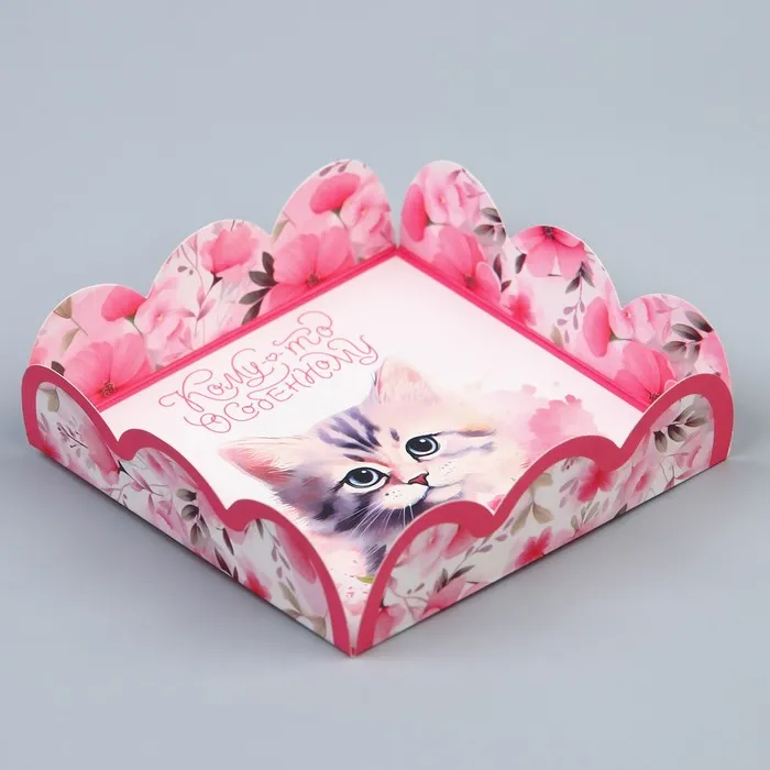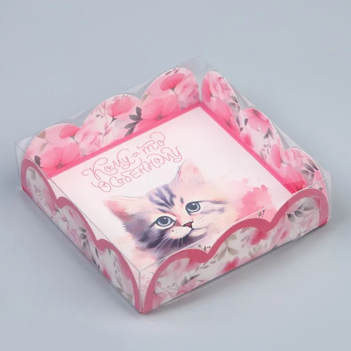 Коробка для печенья, кондитерская упаковка с PVC крышкой, «Котёнок», 10.5 х 10.5 х 3 см — Характеристики