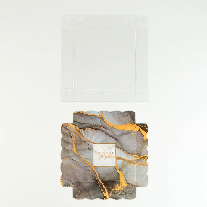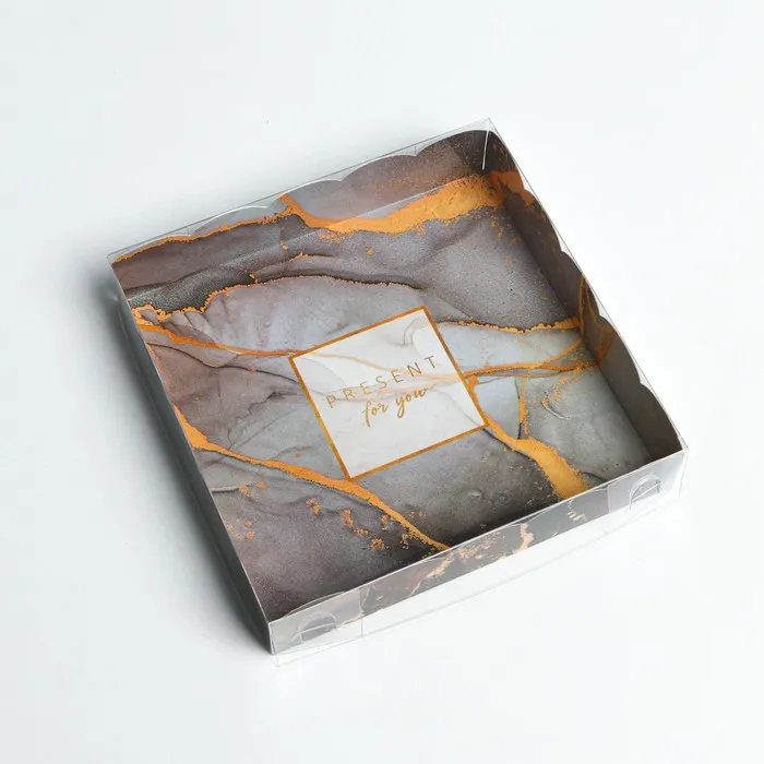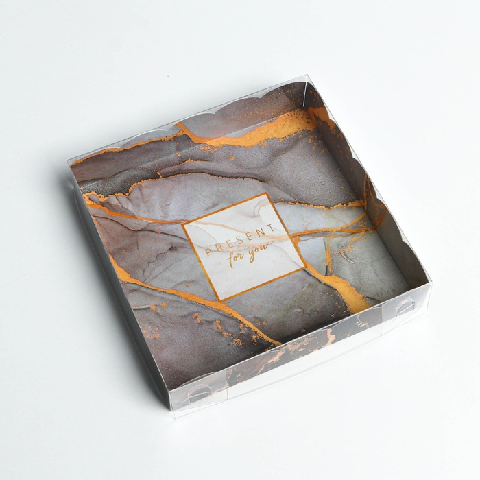 Коробка для печенья, кондитерская упаковка с PVC крышкой, «Мрамор», 15 х 15 х 3 см — Характеристики