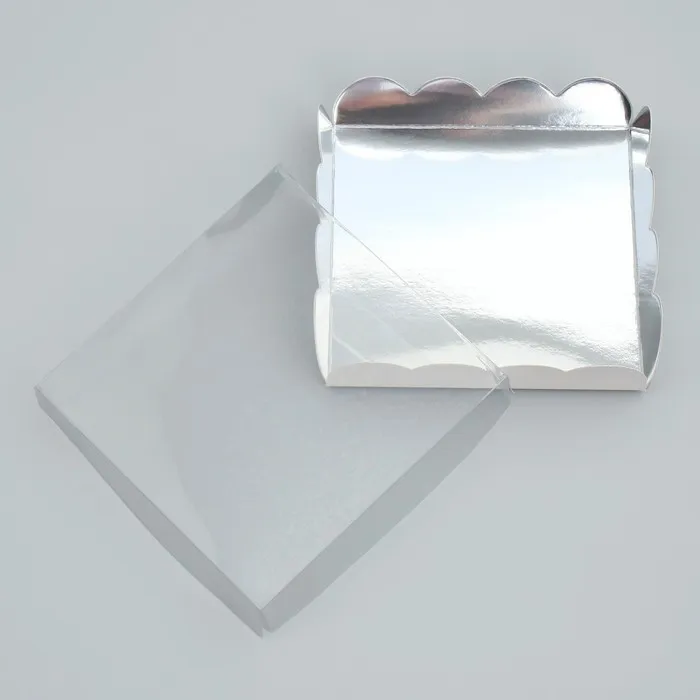 Коробка для печенья, кондитерская упаковка с PVC крышкой, «Серебристая», 13 х 13 х 3 см — Характеристики
